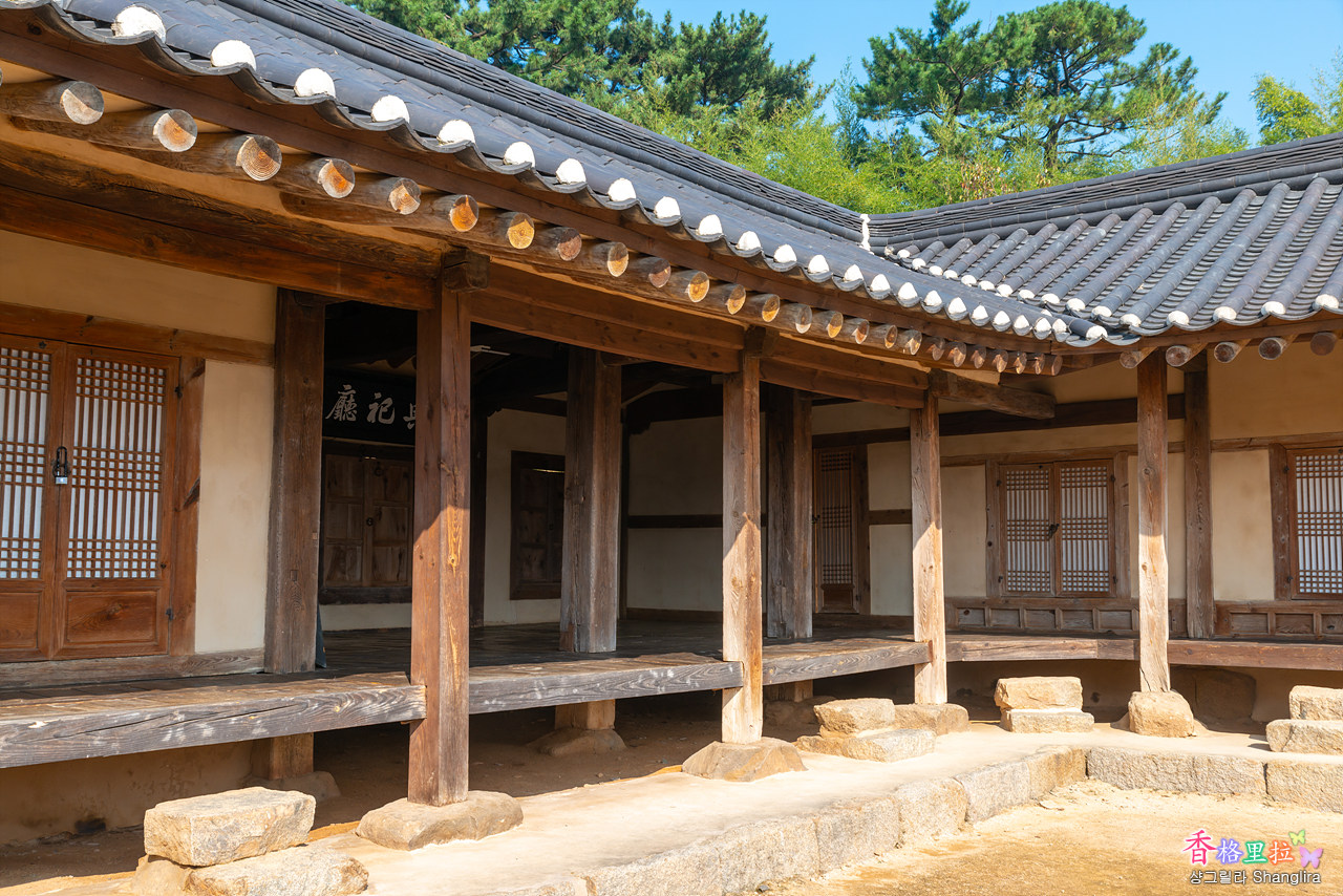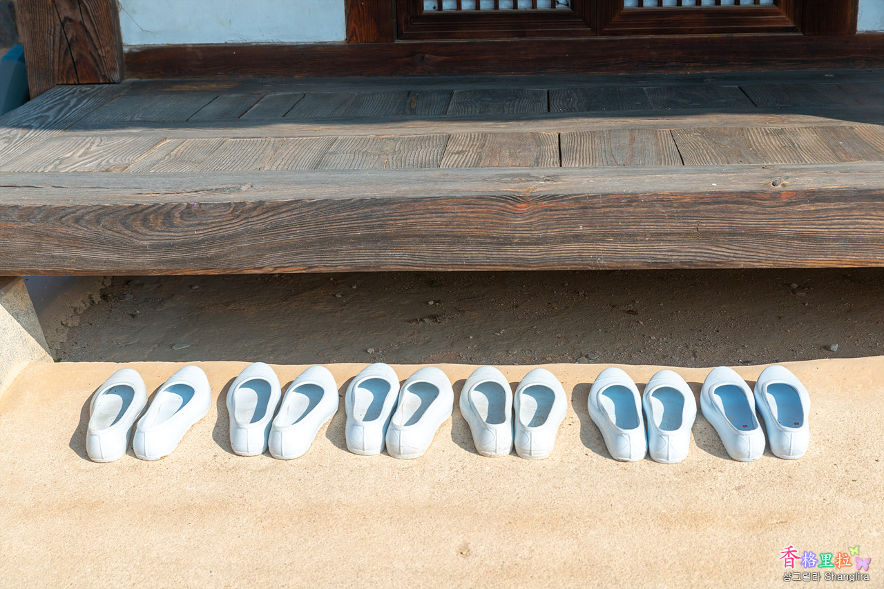 나란히 벗어놓은 흰 고무신이 옛날 정취를 풍긴다.