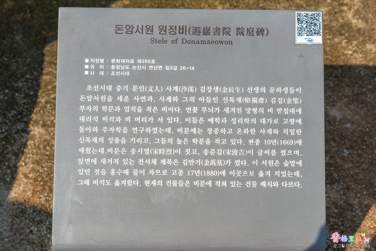 ▲논산 돈암서원(遯巖書院) 원정비(院庭碑) 안내문