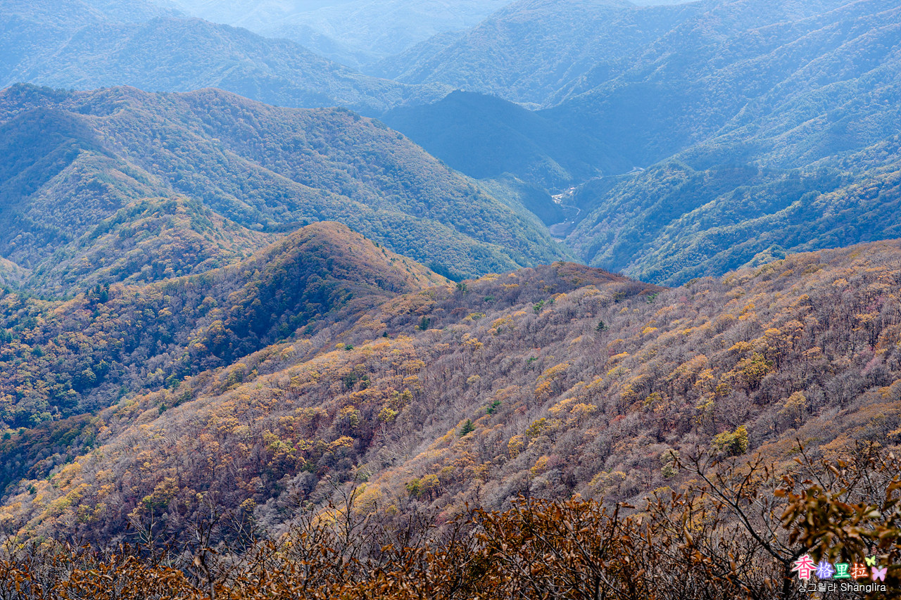 동쪽 능선에만 울긋불긋한 색으로 물들었다.