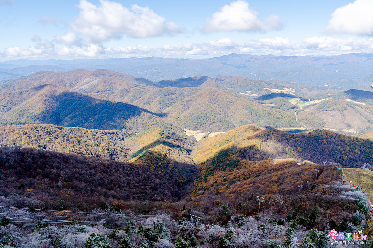 재작년에 공사 중이었던 스카이워크가 완공되어 있었다. 스카이워크에 올라가 사방을 내려다보니 상고대와 물들듯 말듯한 단풍, 상고대, 파란 하늘, 구름을 다 감상할 수 있어 날씨 운이 너무 좋았던 날이다.