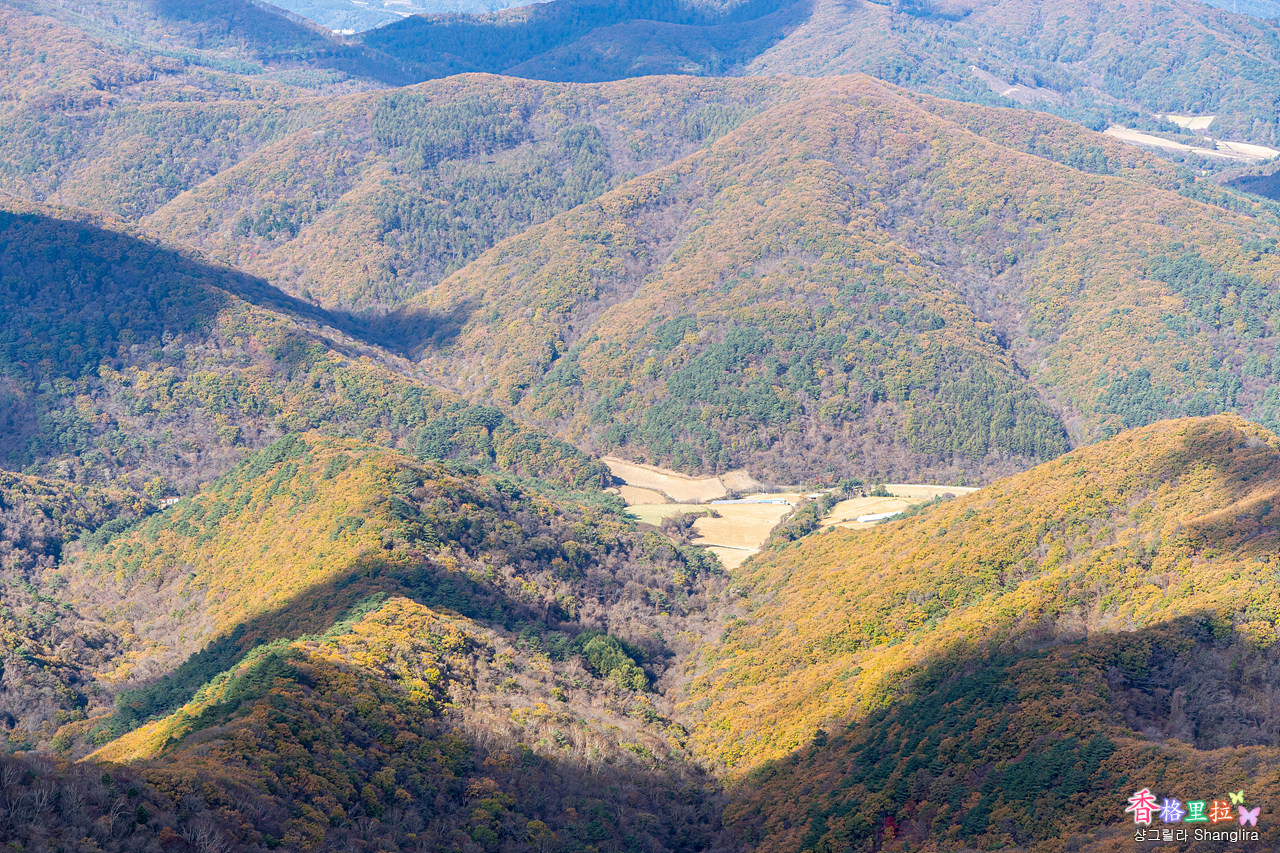 서쪽 산 능선의 나무들은 아직 초록빛이 더 짙다.