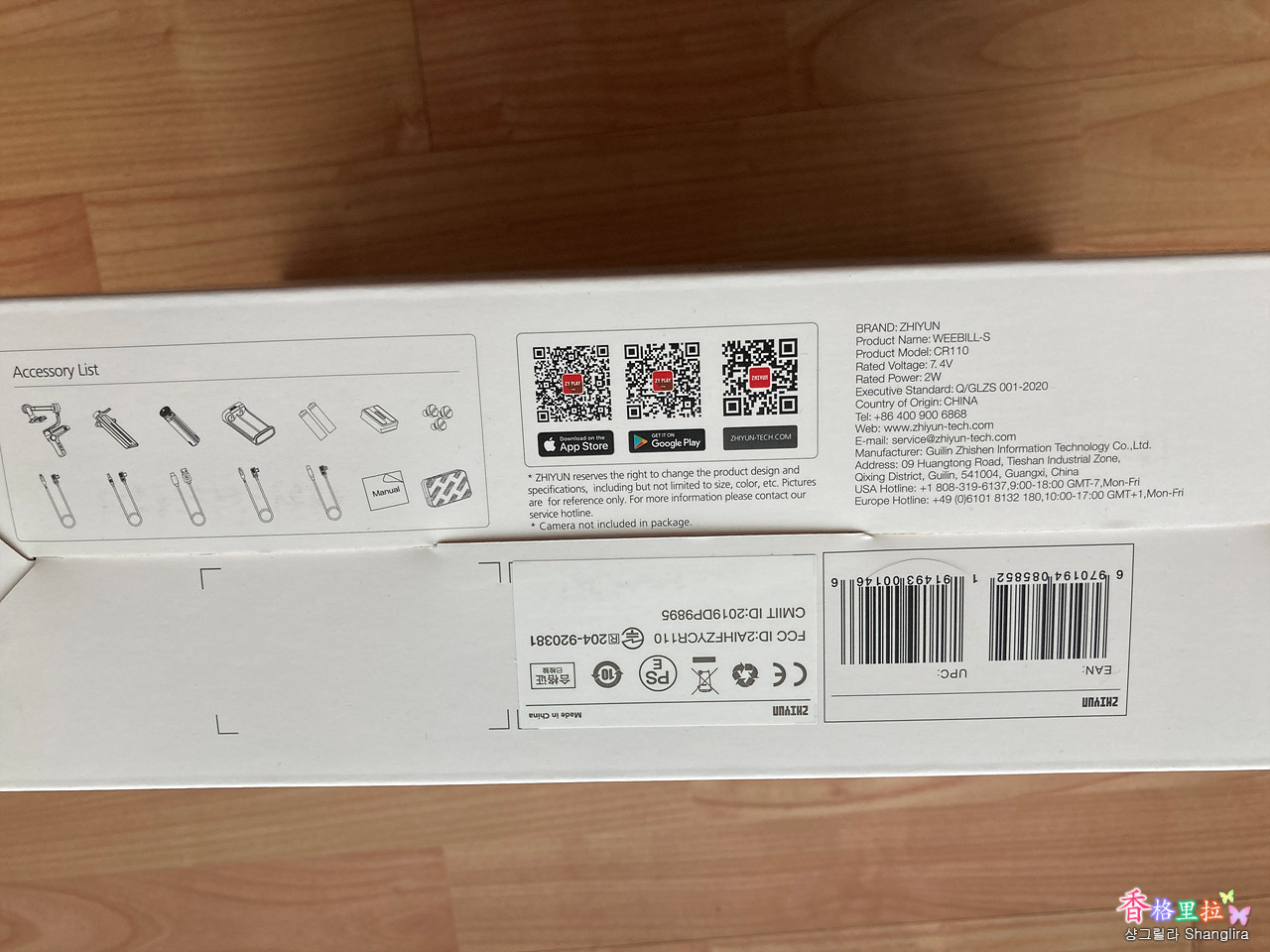 위빌 S(Weebill S) 짐벌(Gimbal) 박스를 열었더니 ZHIYUN(지윤)이라는 회사 이름이 적힌 종이가 보인다.