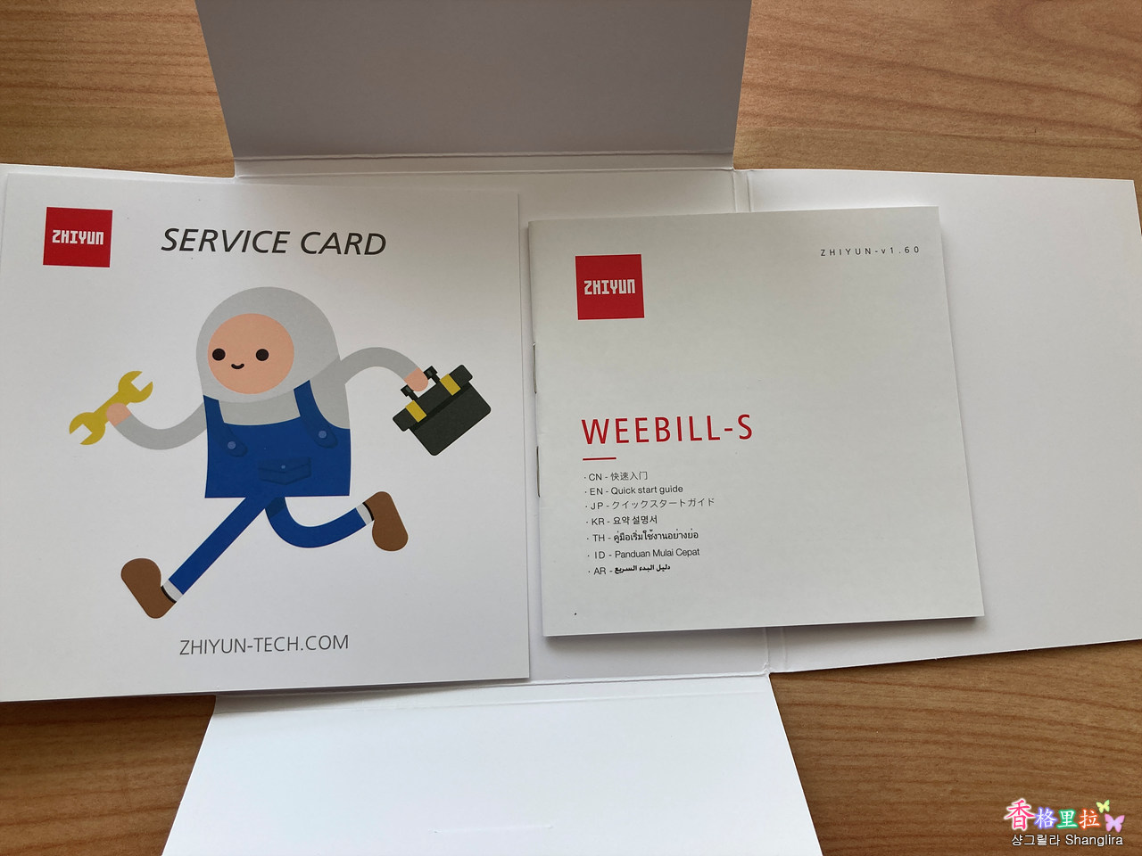 ▲위빌 S(Weebill S) 짐벌(Gimbal) 설명서와 서비스 카드