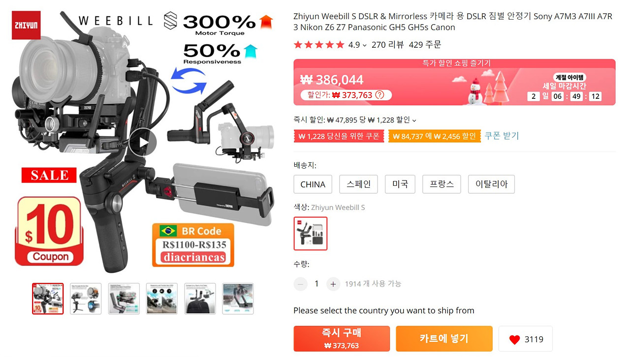 국내 직구대행사에서 Ali 직구가격 보다 훨씬 싸게 구할 수 있다.