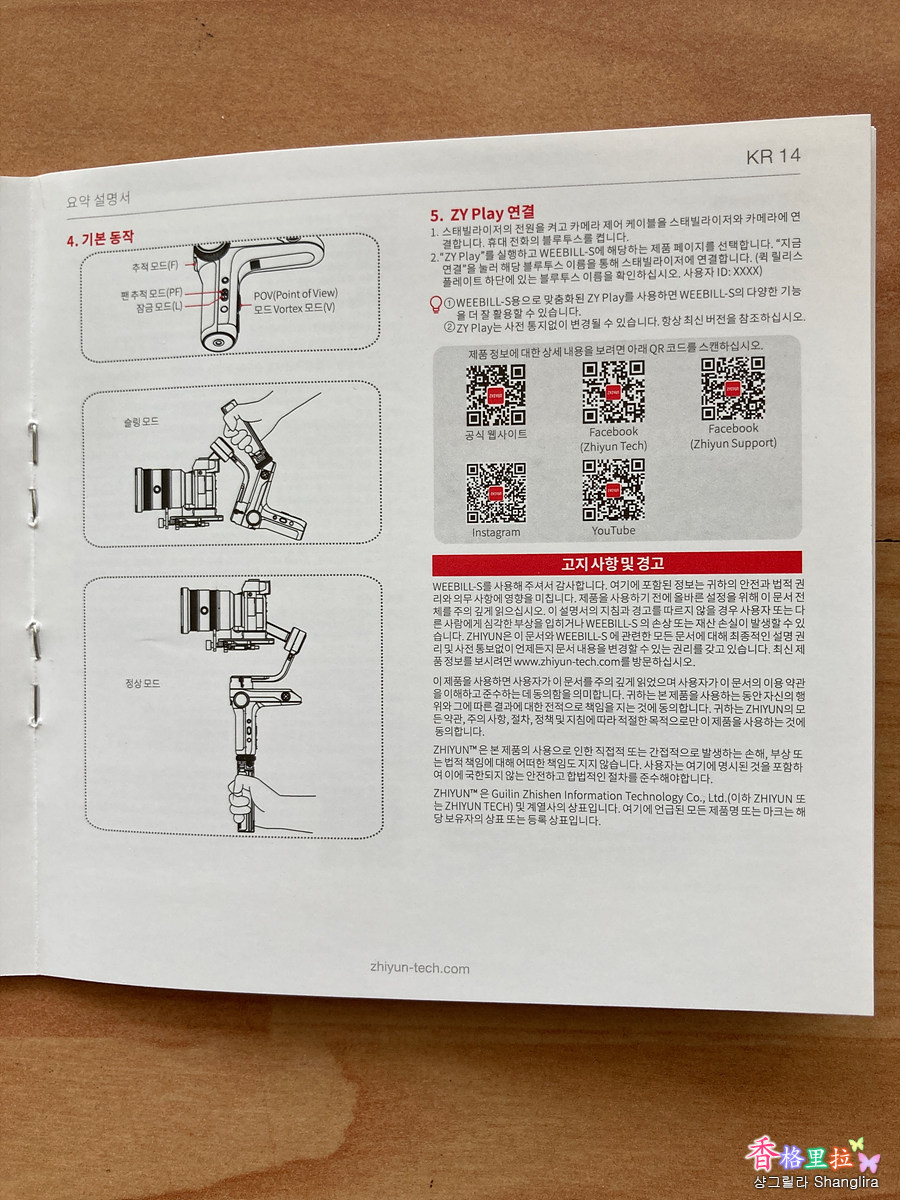 동봉된 위빌 S(Weebill S) 짐벌(Gimbal) 설명서는 요약본이라 별 도움이 안 된다.