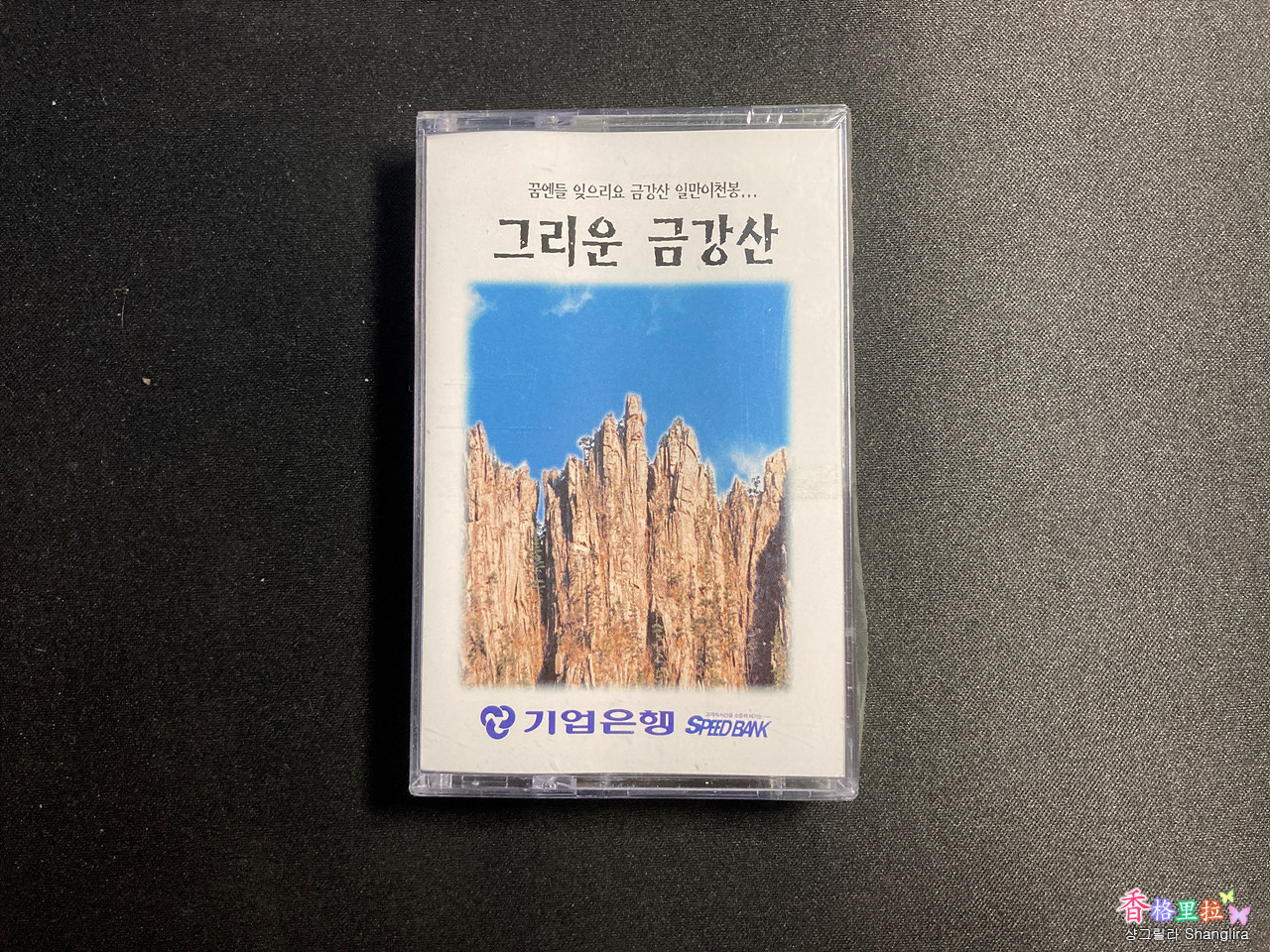 기업은행에서 홍보용으로 배포한 가곡집 '그리운 금강산'은 겉 비닐을 뜯지 않은 미개봉 테이프다.