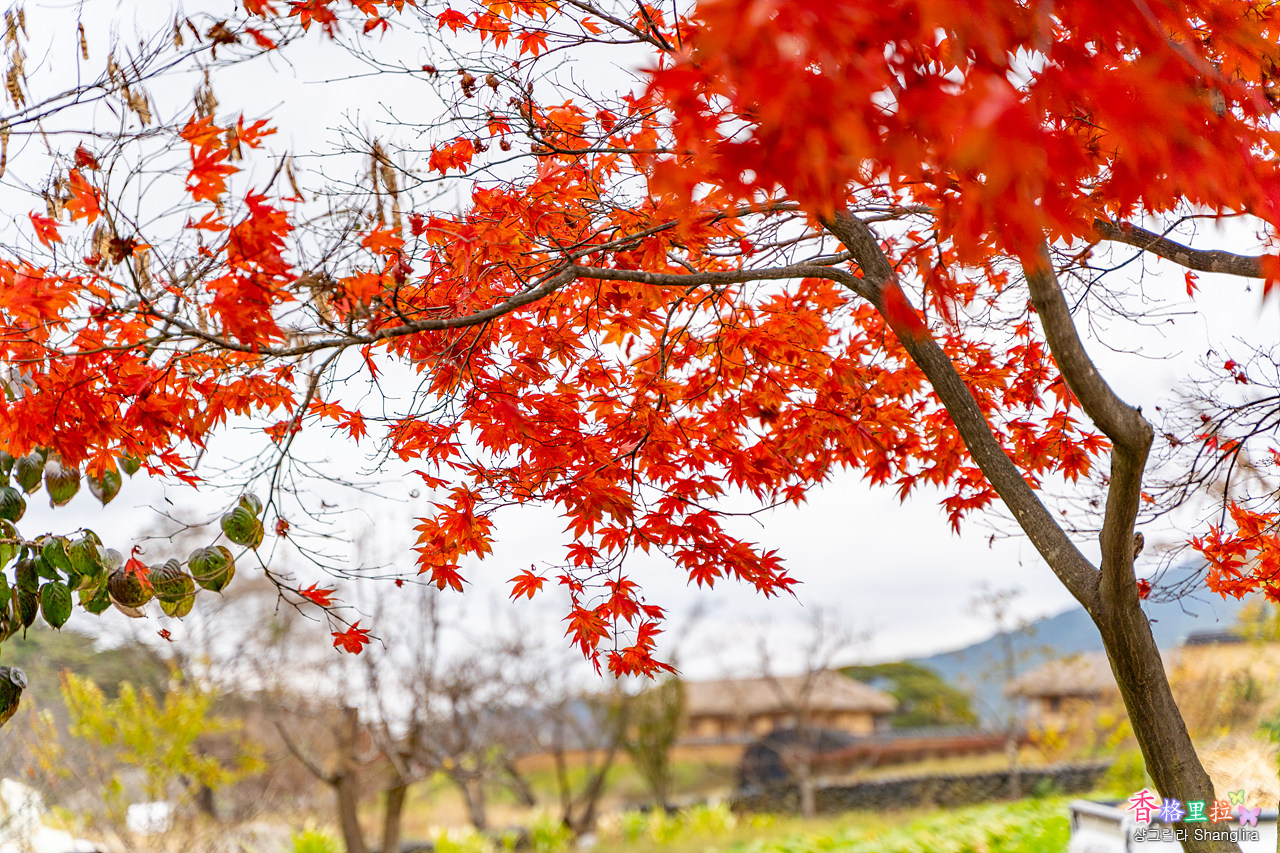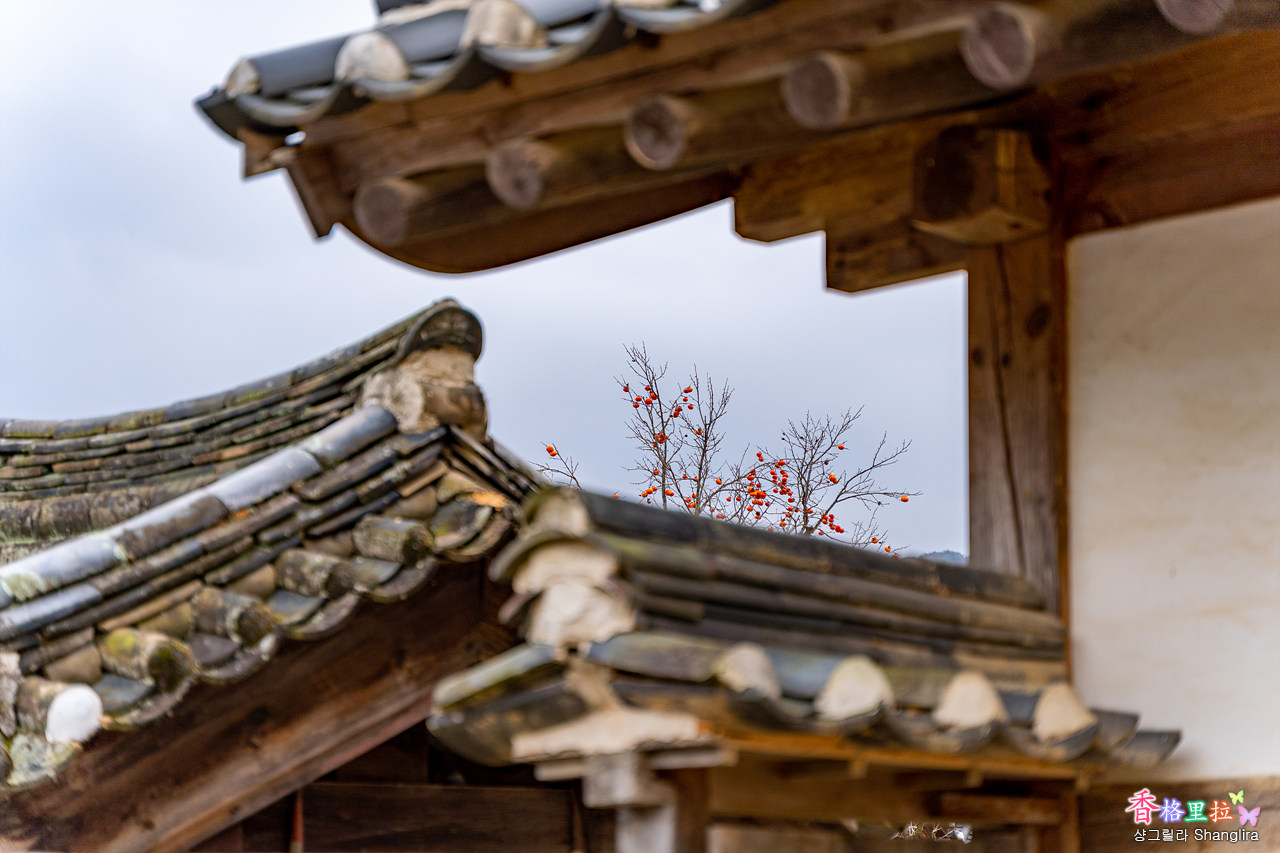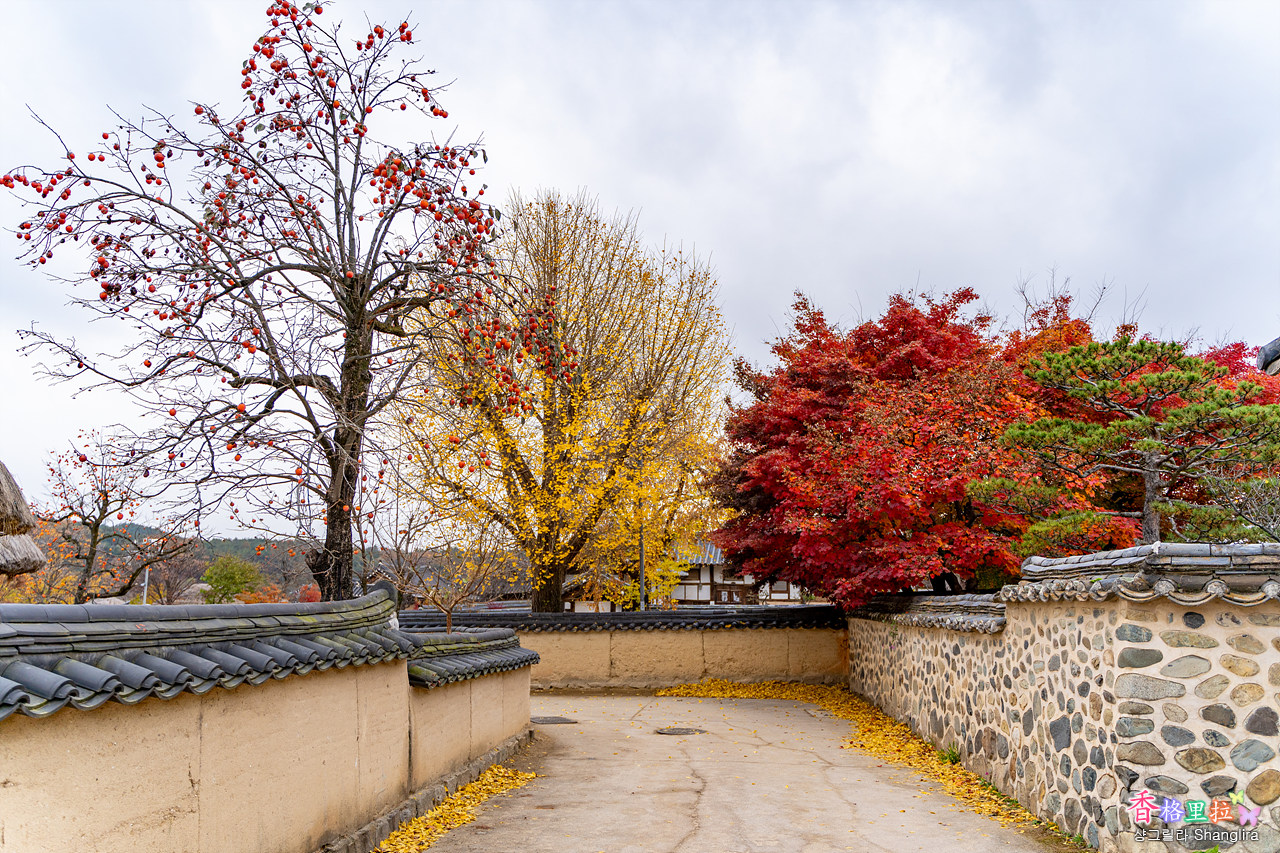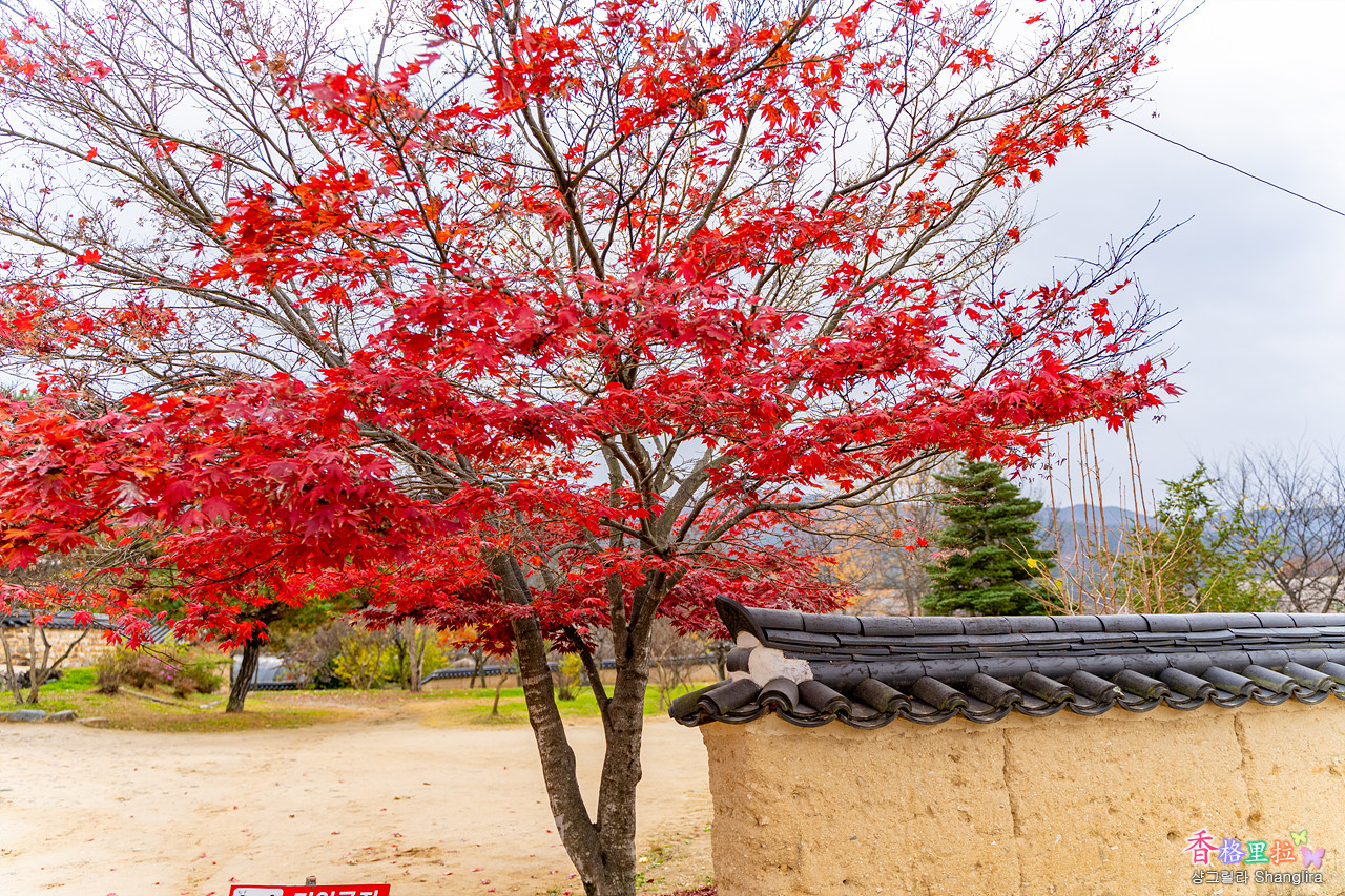 아직 붉은 단풍이 고가(古家)의 담과 어울리는 그림이 되어주고 있다.