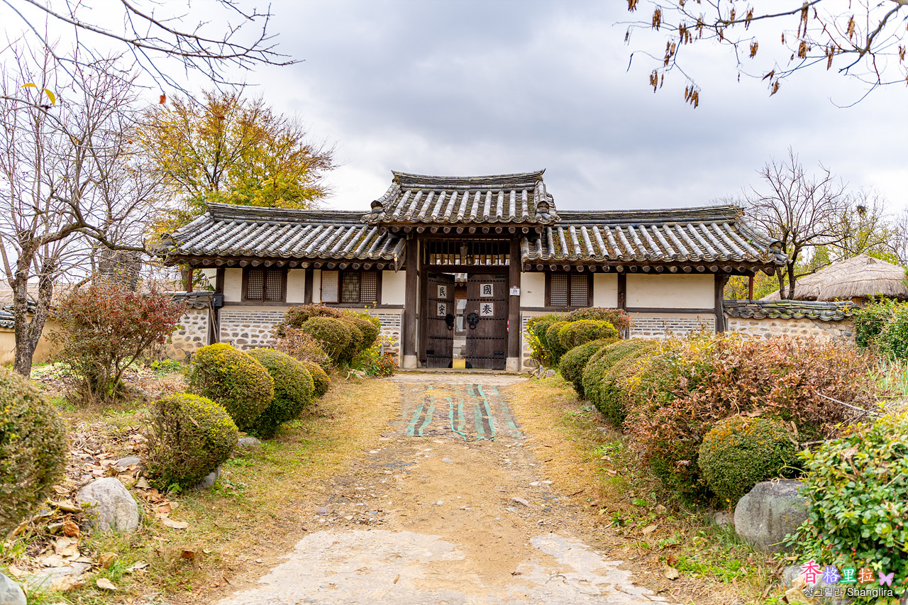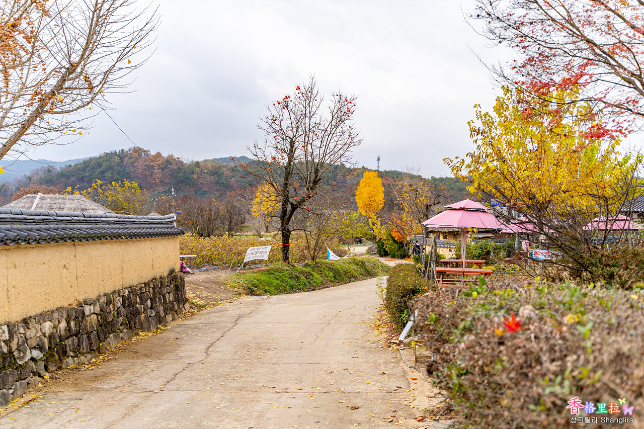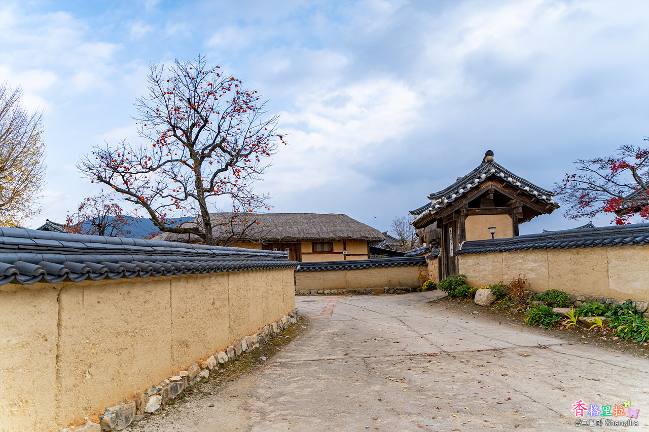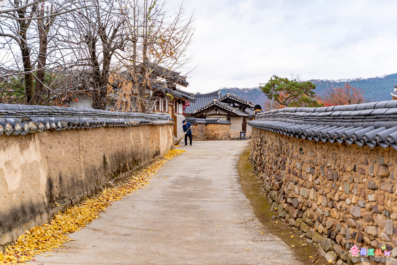 아직 붉은 단풍이 고가(古家)의 담과 어울리는 그림이 되어주고 있다.