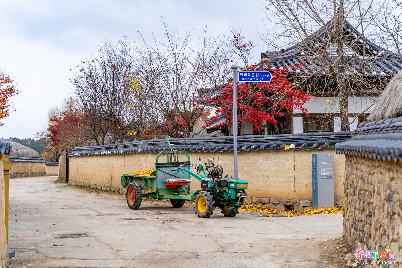 아직 붉은 단풍이 고가(古家)의 담과 어울리는 그림이 되어주고 있다.
