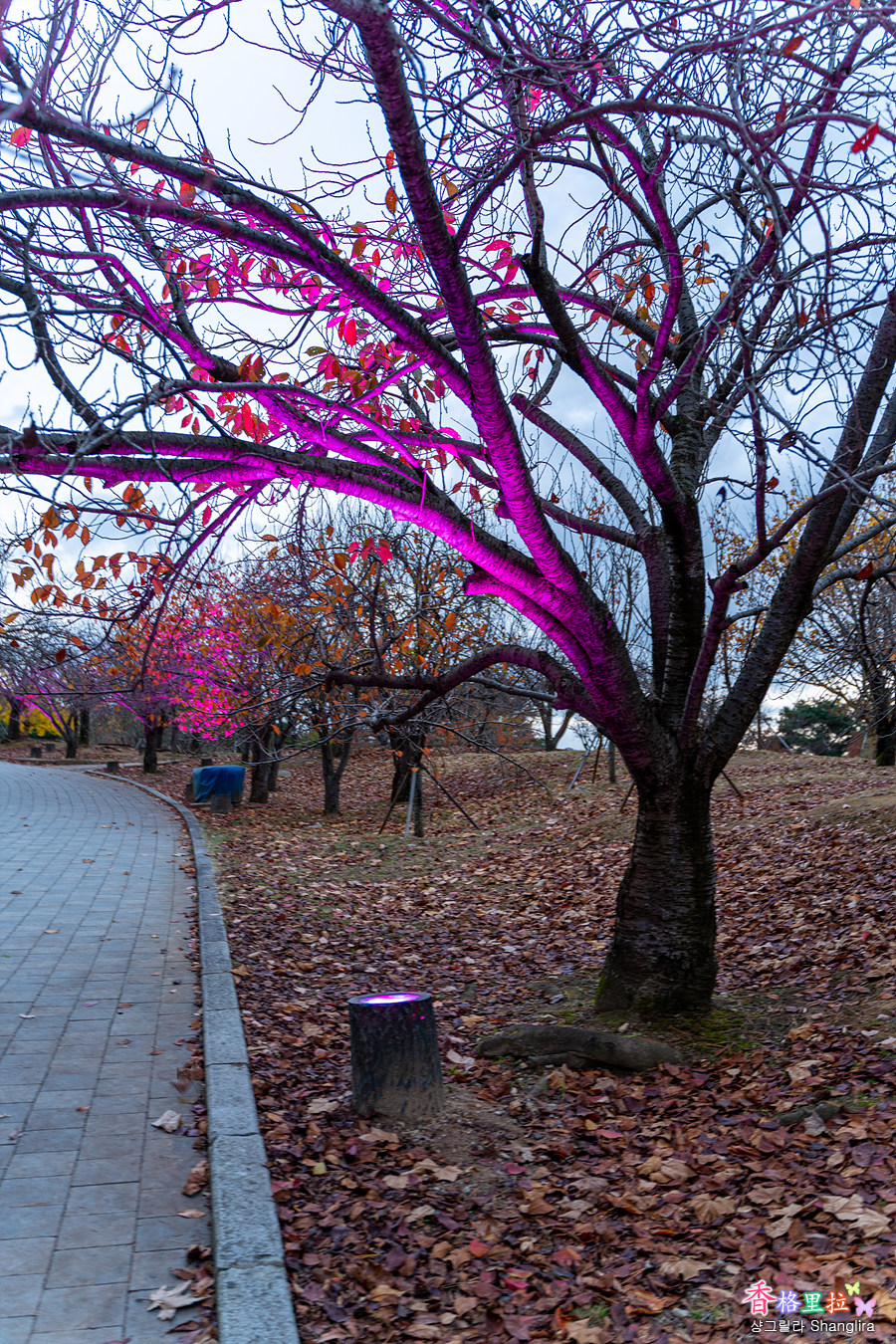 주차장 가는 길에는 조명이 켜져 울긋불긋 나무색을 변화시킨다.