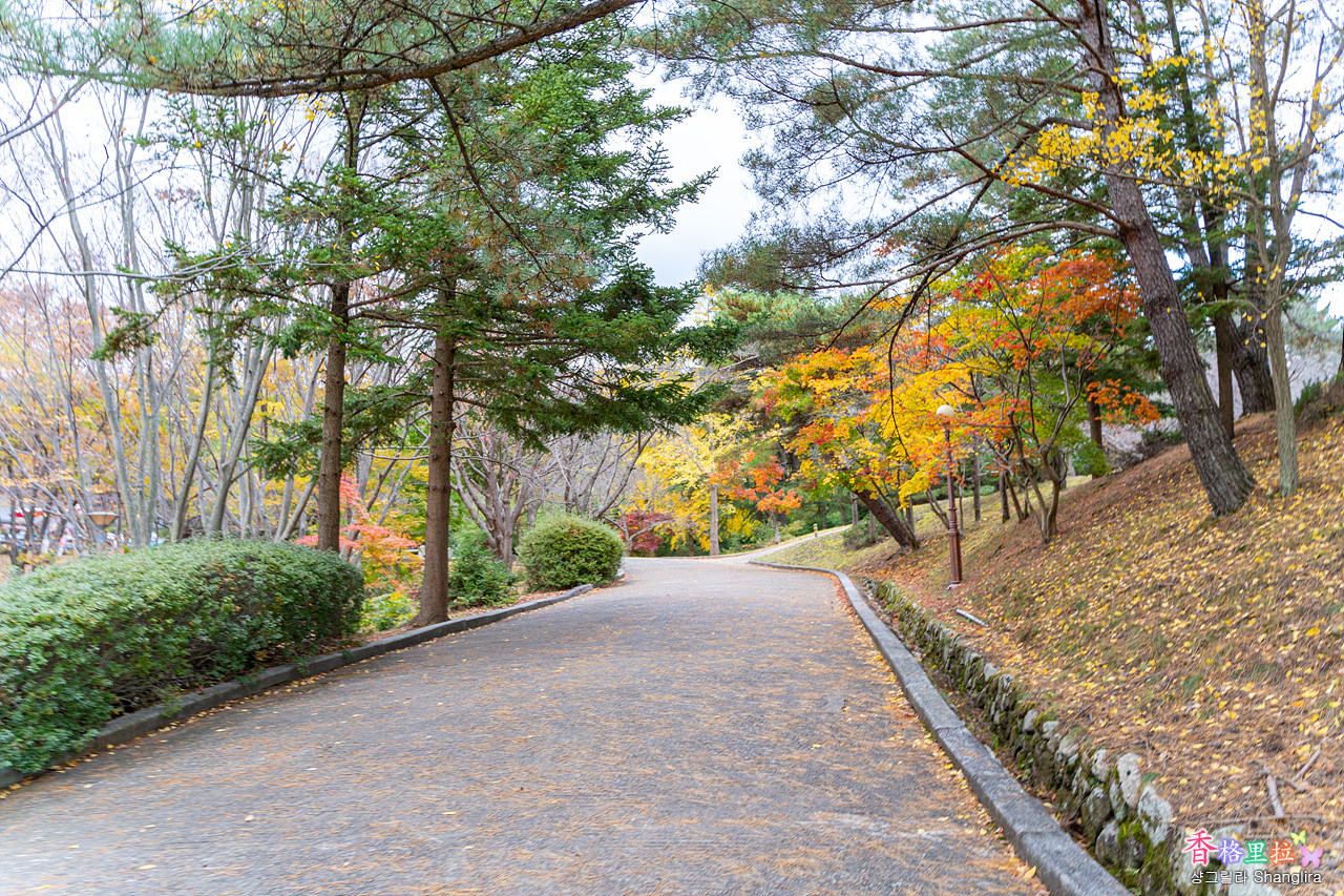 주차장 가는 길에는 조명이 켜져 울긋불긋 나무색을 변화시킨다.