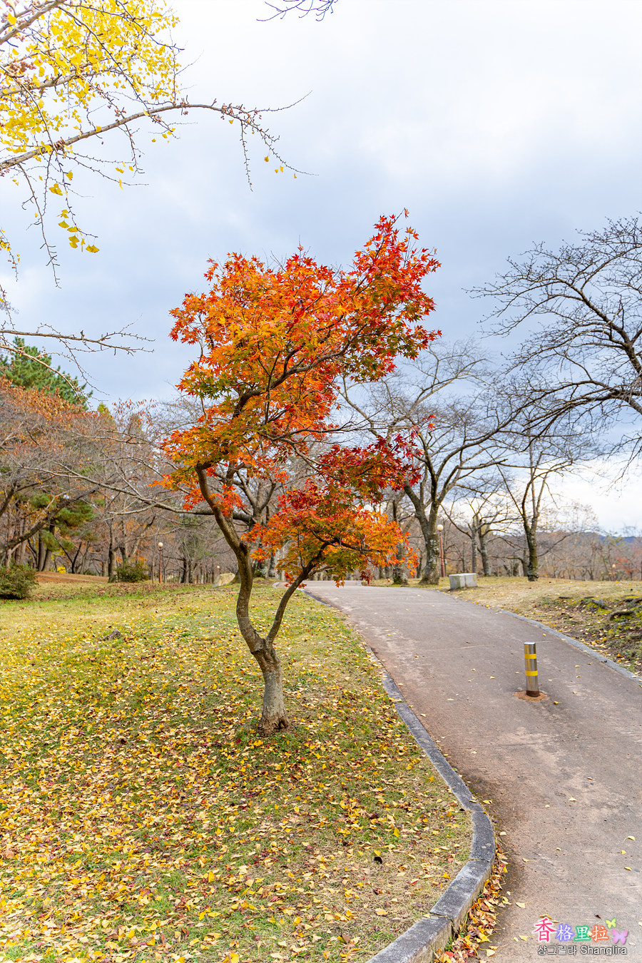 노을빛으로 노랗게 물든 단풍잎들이 시선을  사로잡는다.
