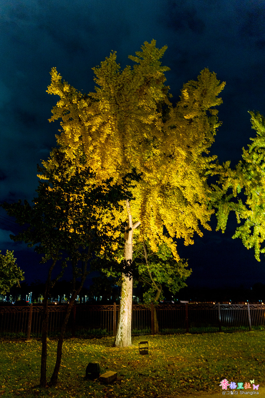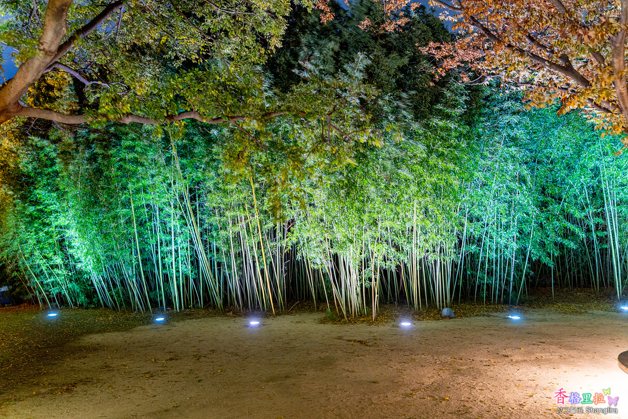 조명으로 초록빛으로 밝게 밝혀진 대나무숲. 바람에 흔들리며 대나뭇잎들이 부딪히는 소리...도시에서 들을 수 없는 소리다.