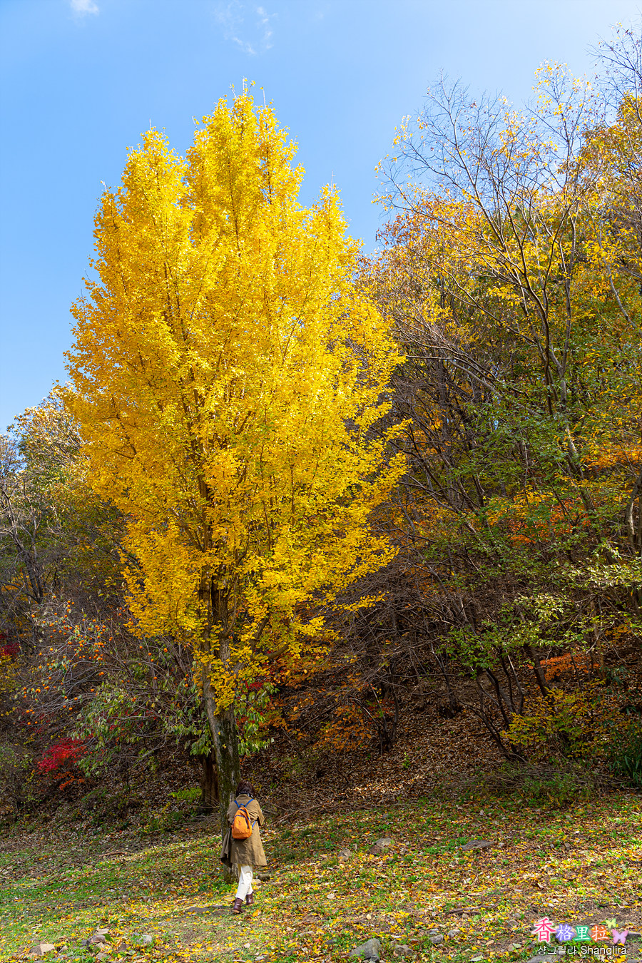 아직 초록색으로 노랗게 물들지 않은 잎들도 보인다.