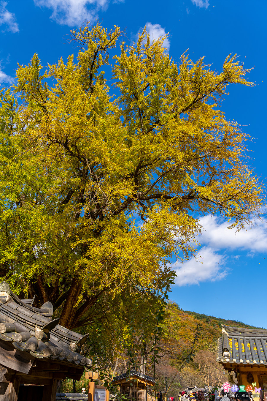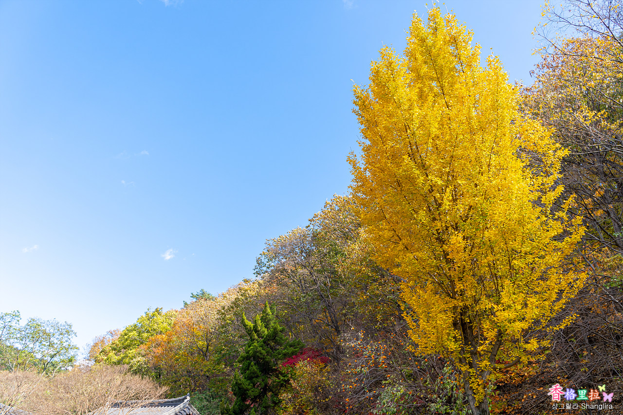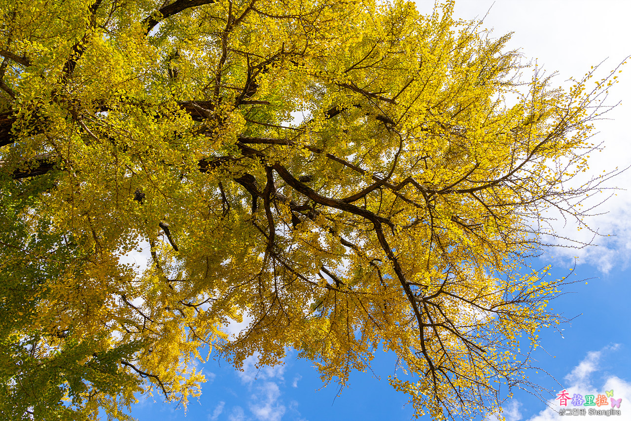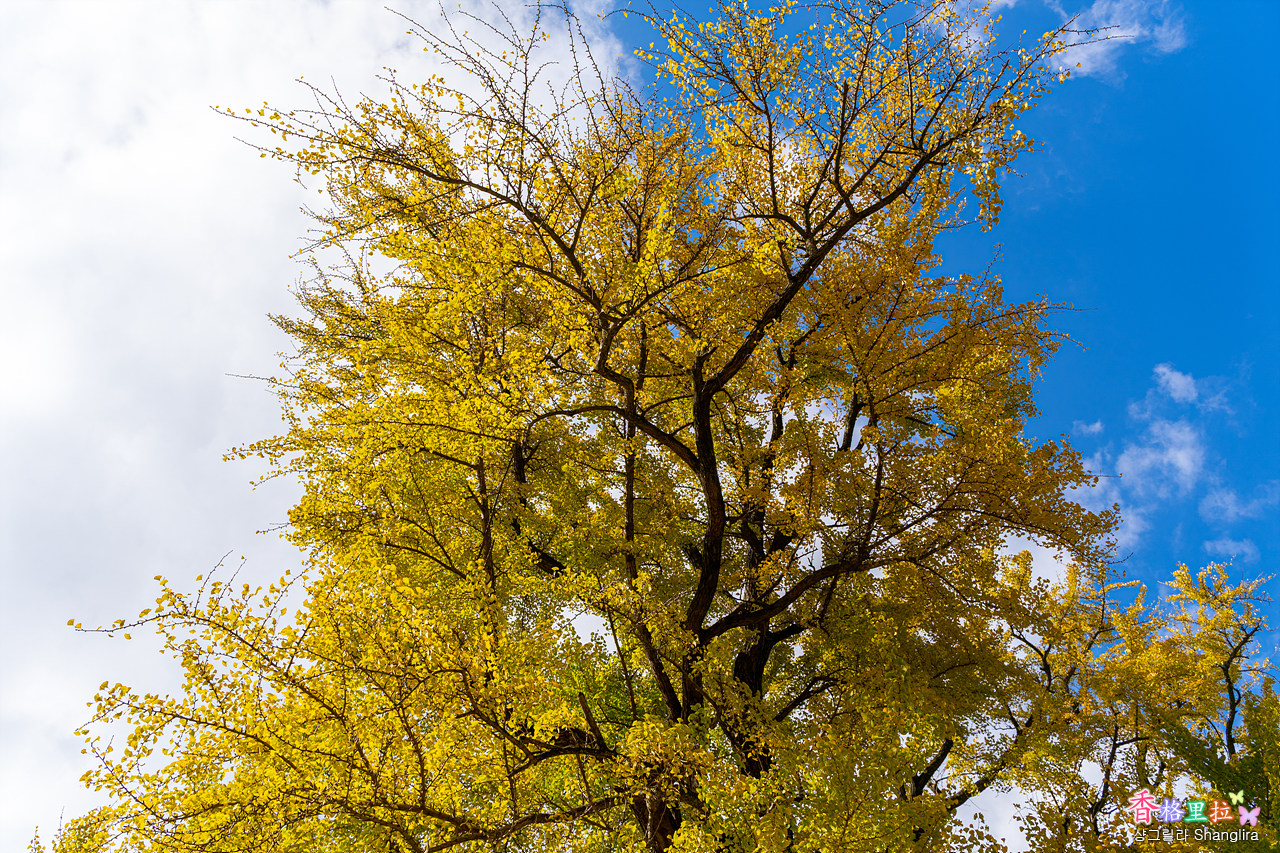 멀리서 보니 아직 완전히 노랗게 물들지 않았음을 알 수 있다.
