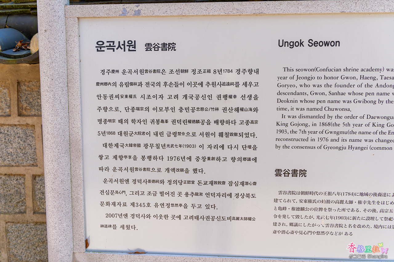 ▲경주 운곡서원(雲谷書院) 안내문