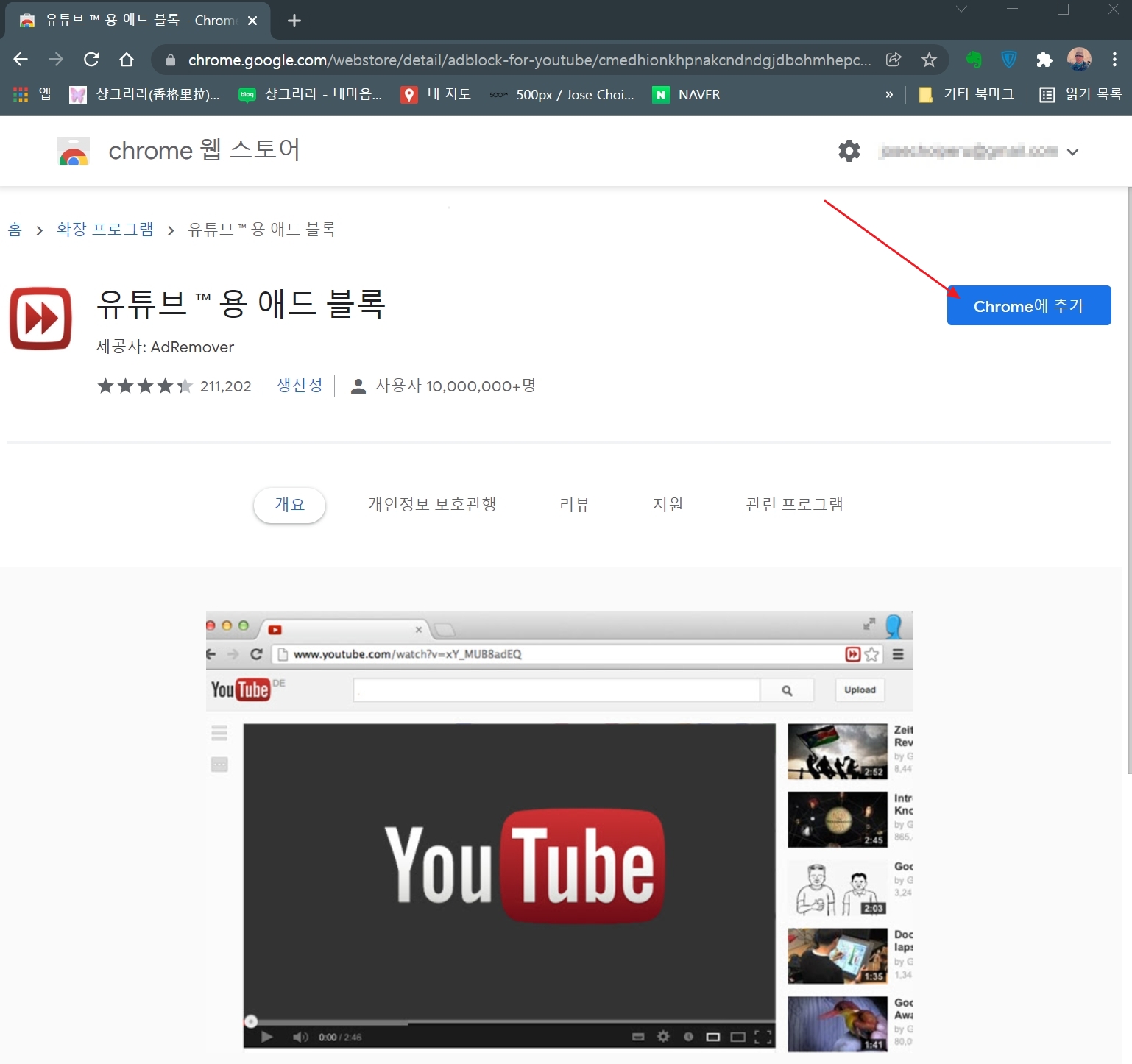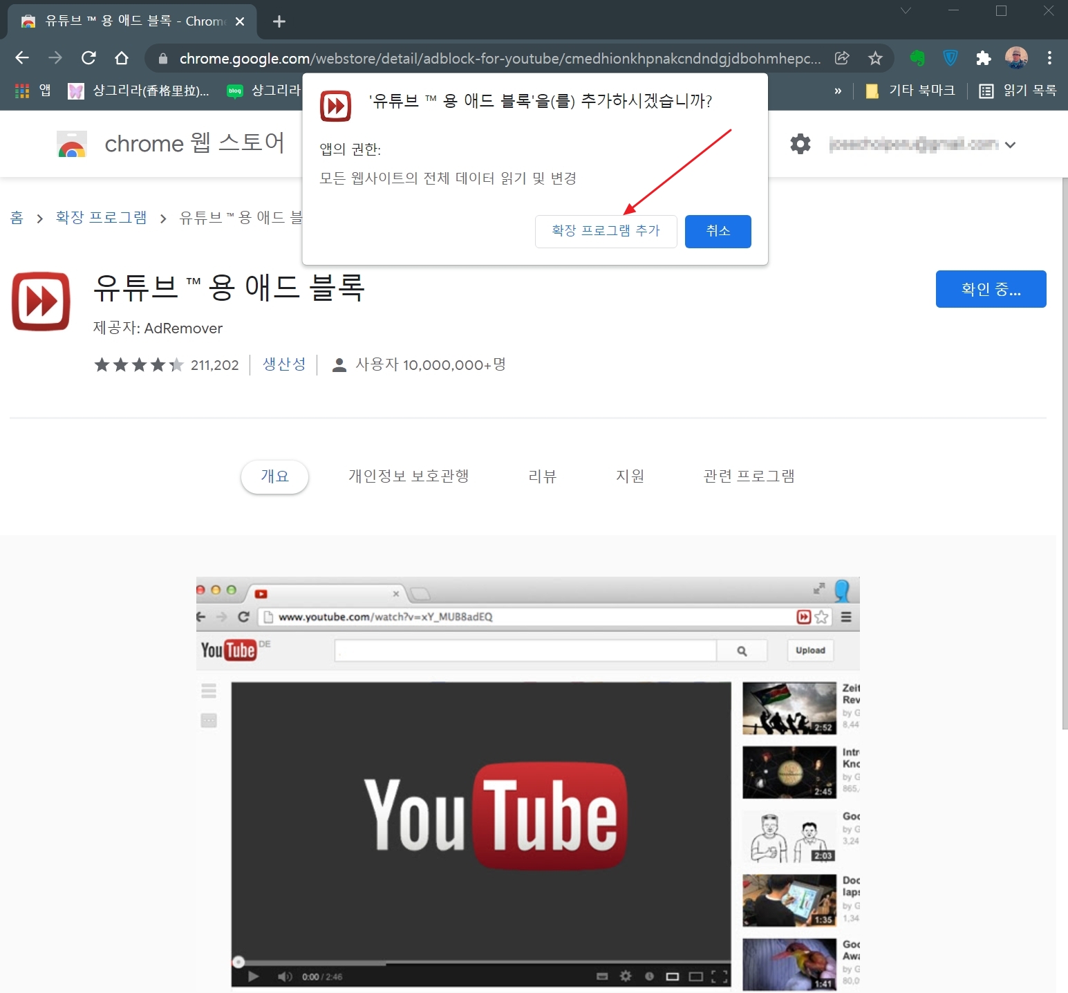 ▲유튜브용 애드블록을 선택한다