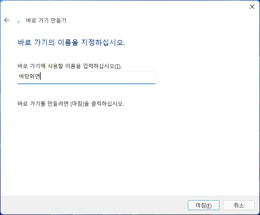 ▲바탕화면으로 이름을 바꾸고 마침을 클릭한다