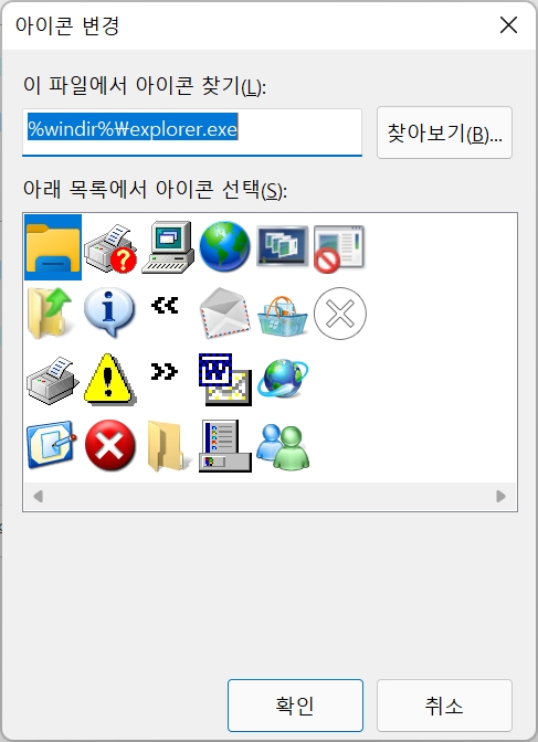 ▲마음에 드는 아이콘을 선택 후 확인을 클릭한다.