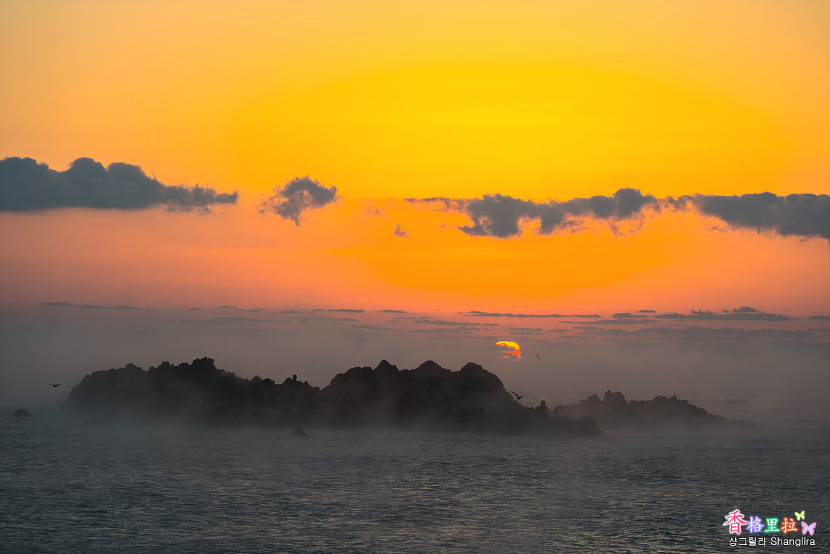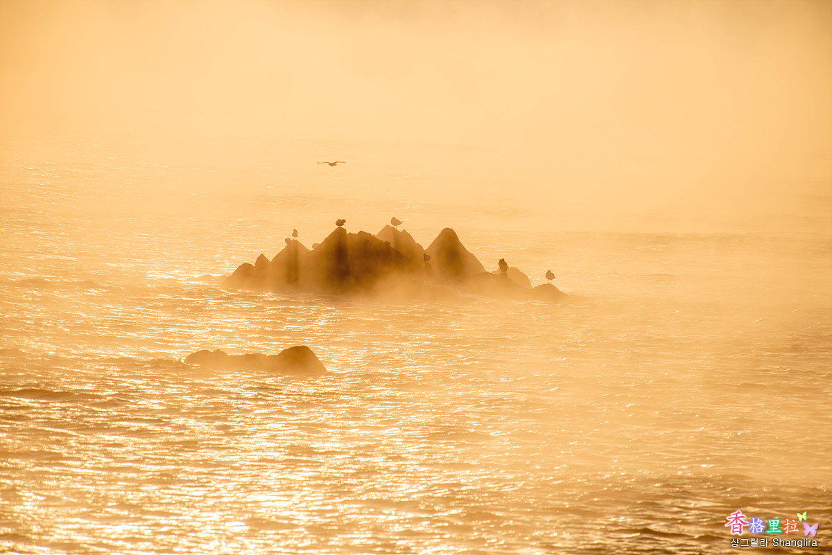 아주 간만에 문무대왕릉에서 환상적인 물안개 낀 아침을 맞았다.