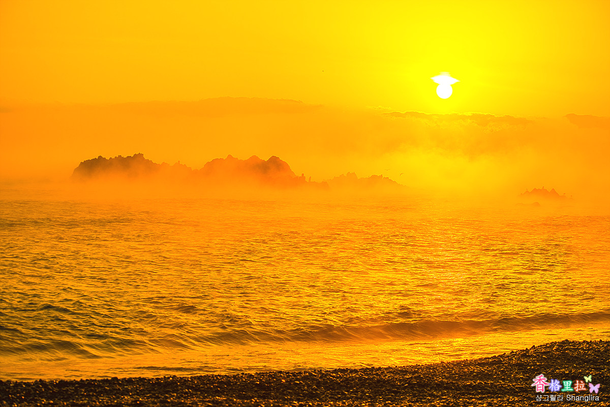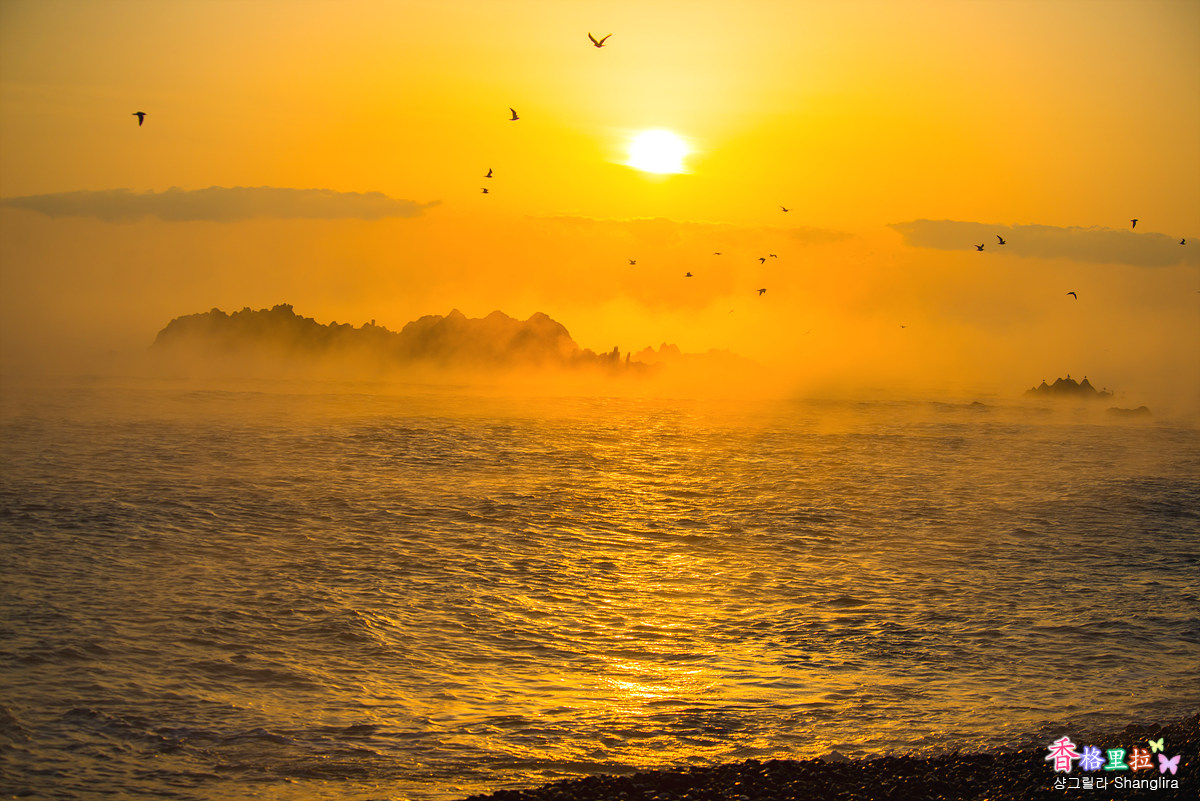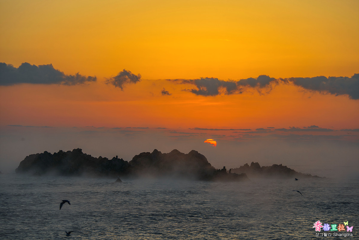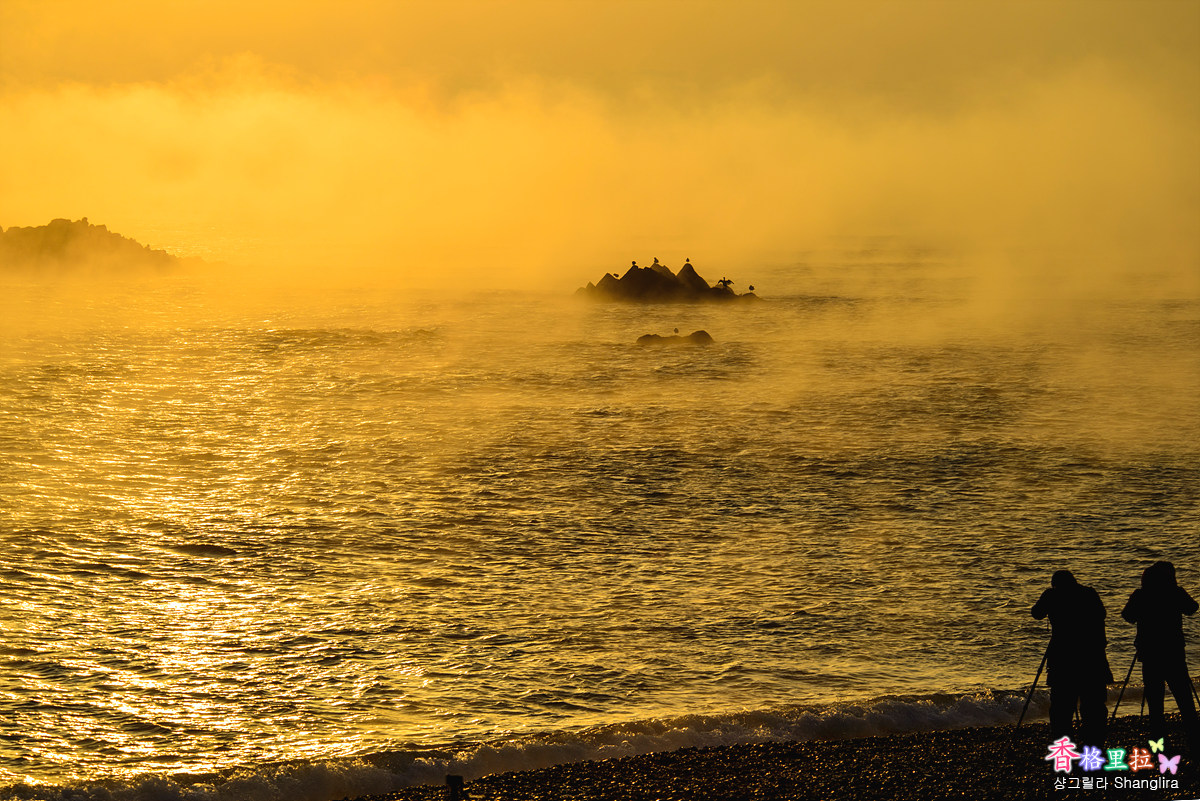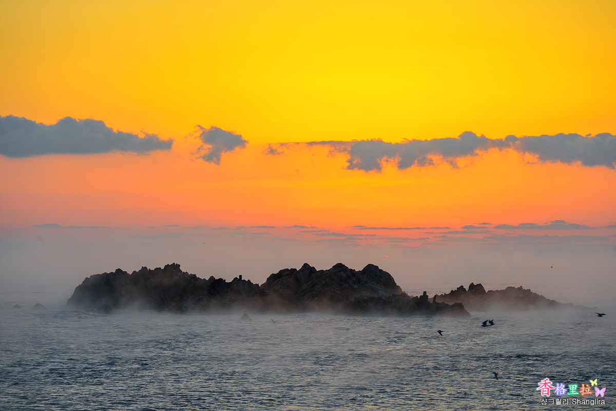 아주 간만에 문무대왕릉에서 환상적인 물안개 낀 아침을 맞았다.