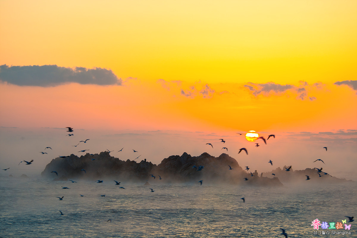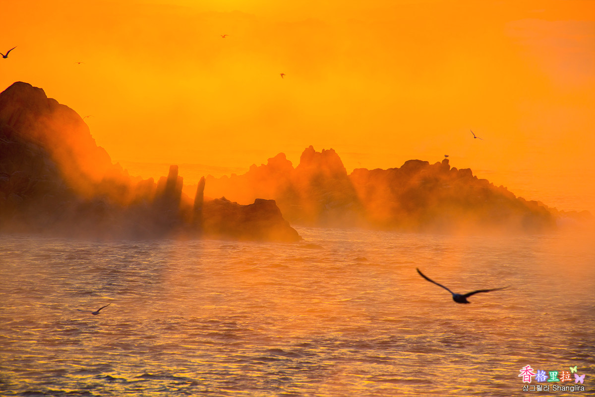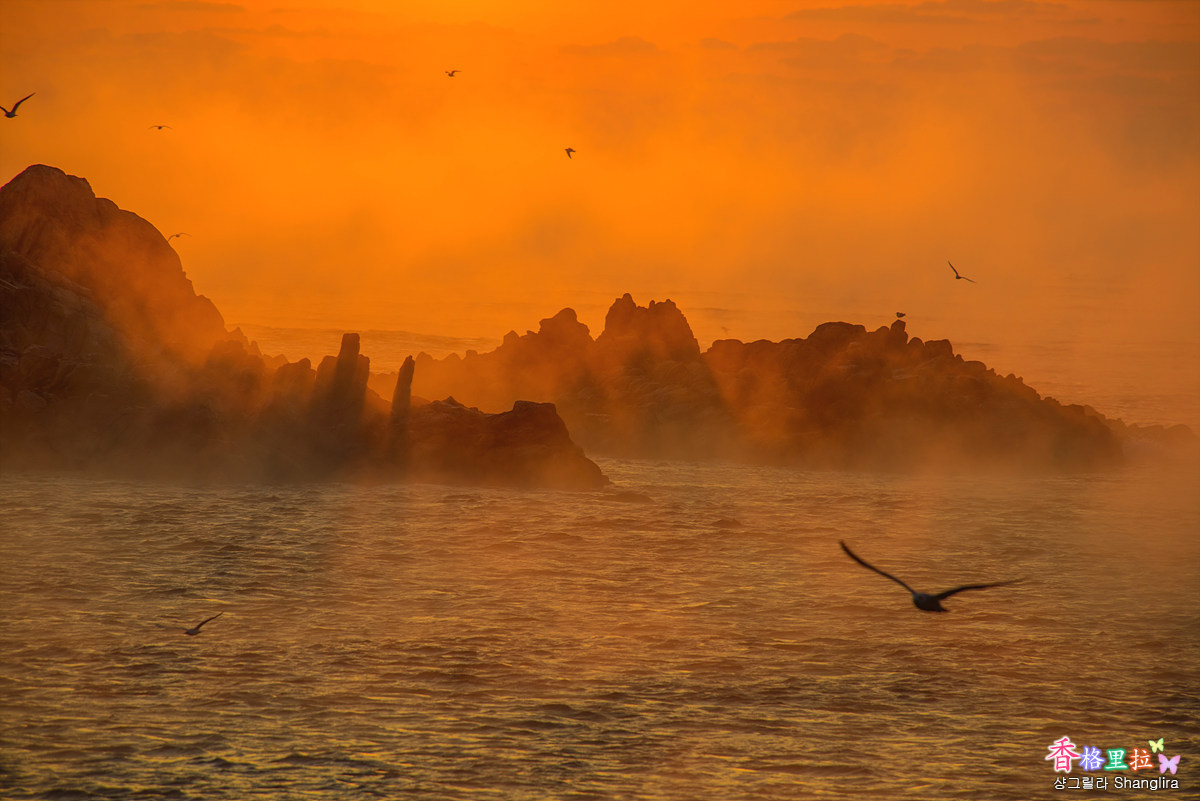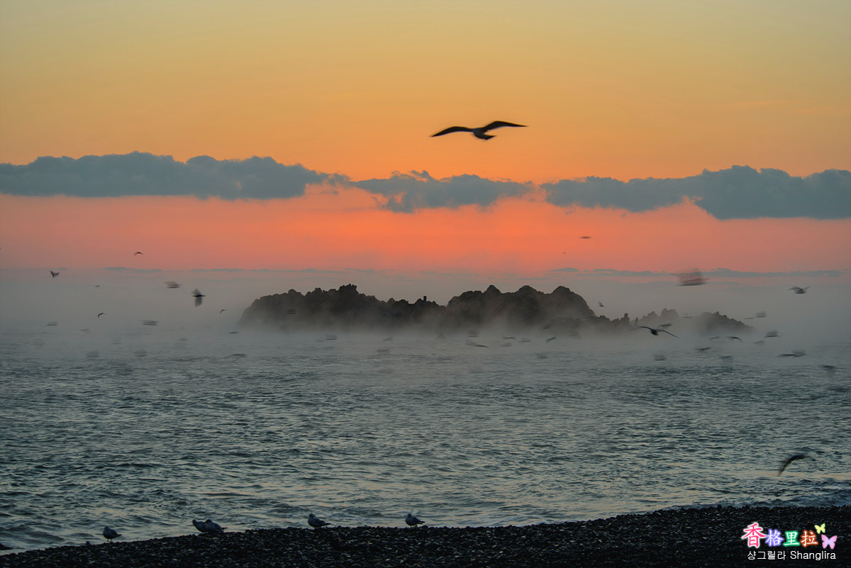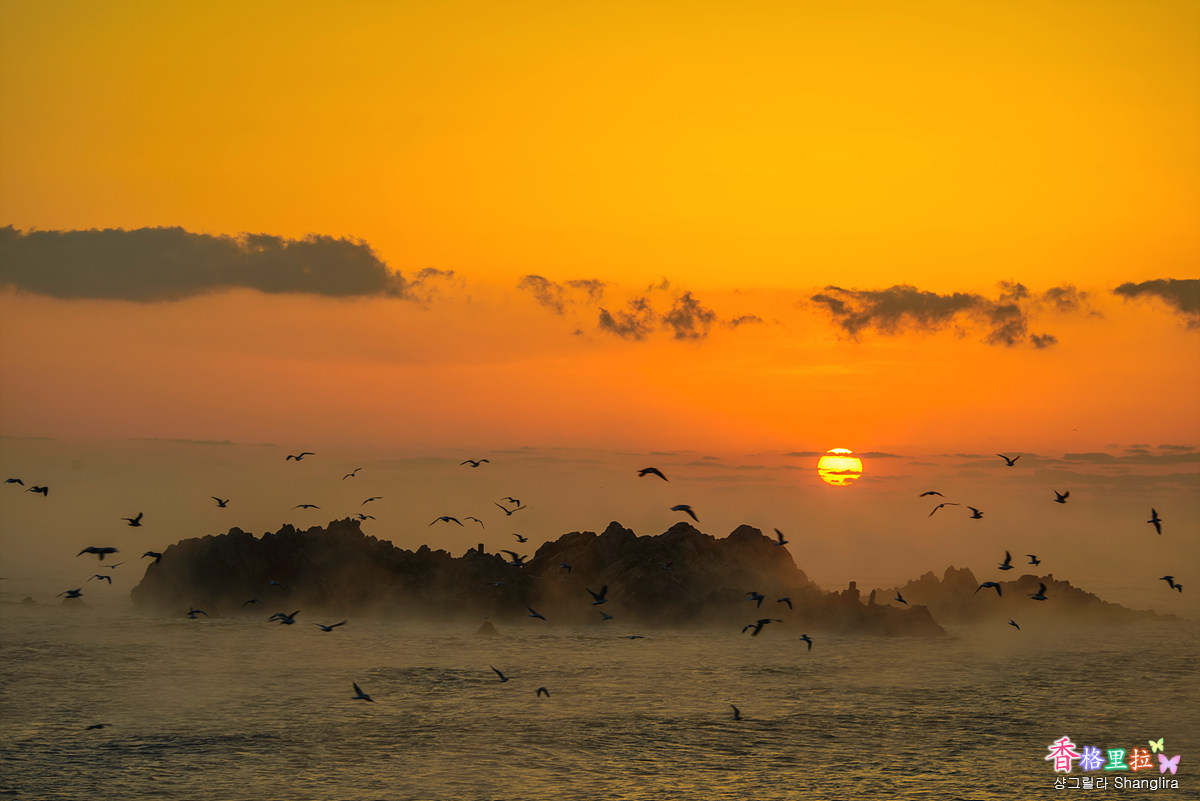 아주 간만에 문무대왕릉에서 환상적인 물안개 낀 아침을 맞았다.