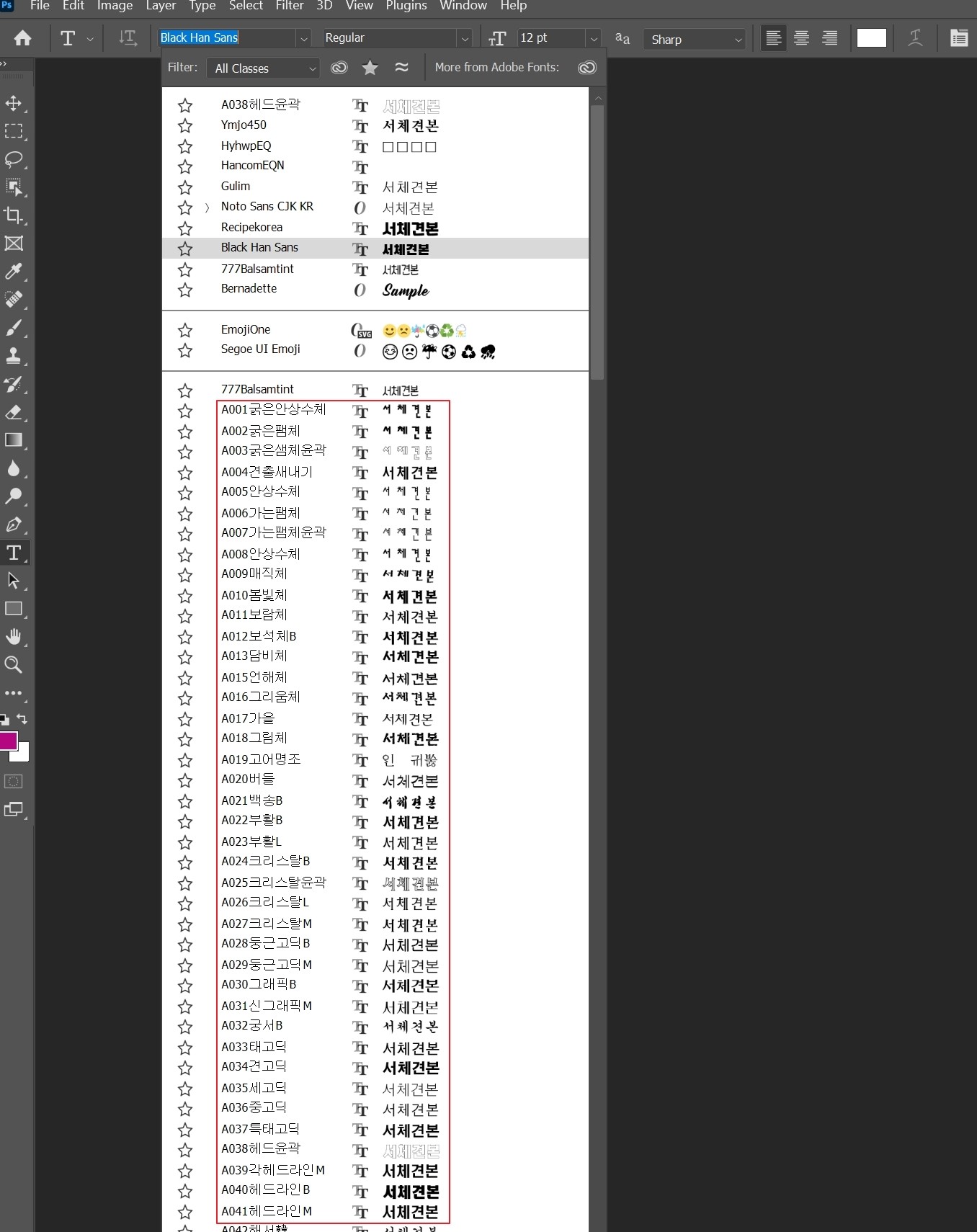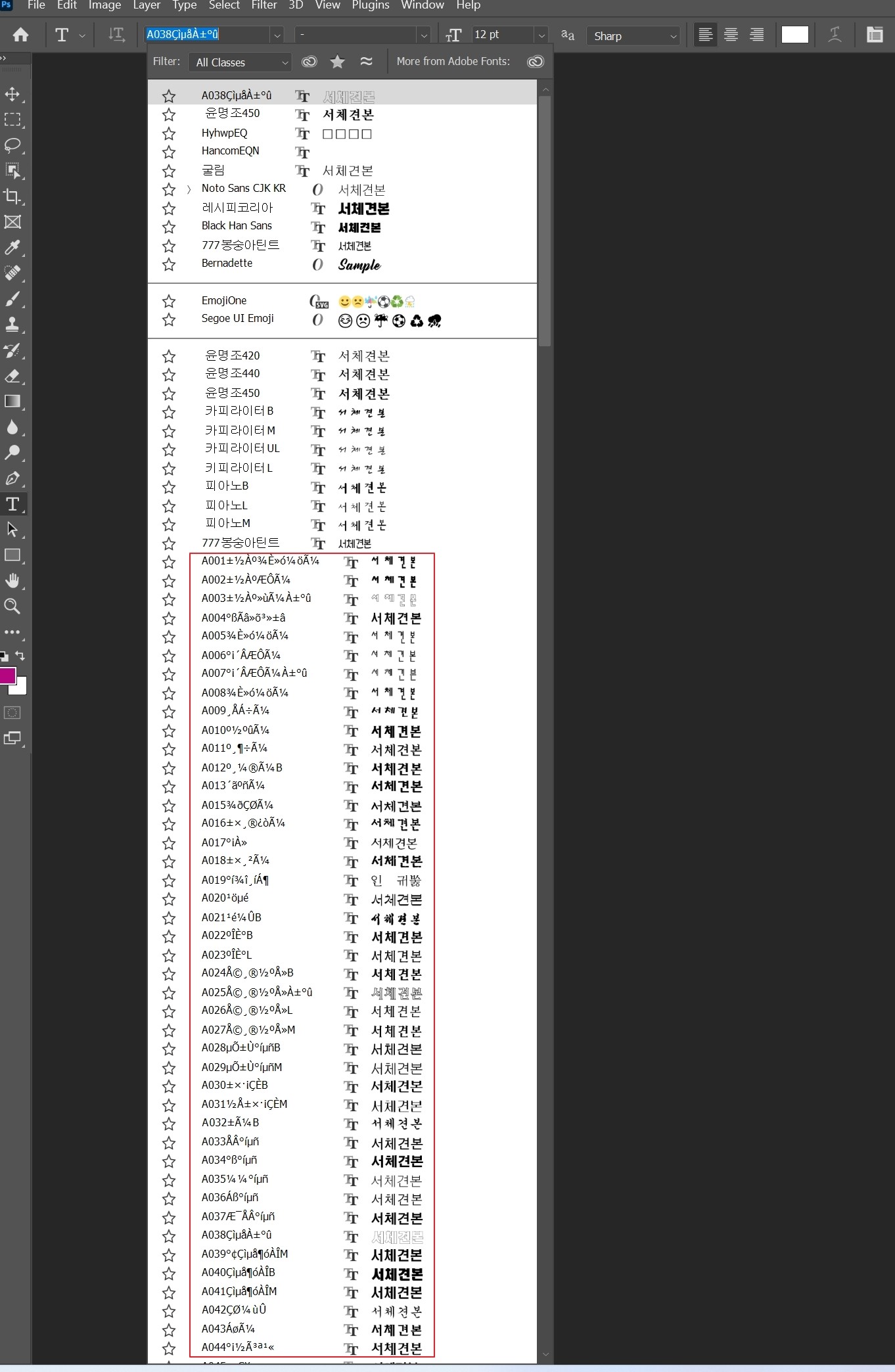 포토샵에서 폰트이름이 깨져 보일때