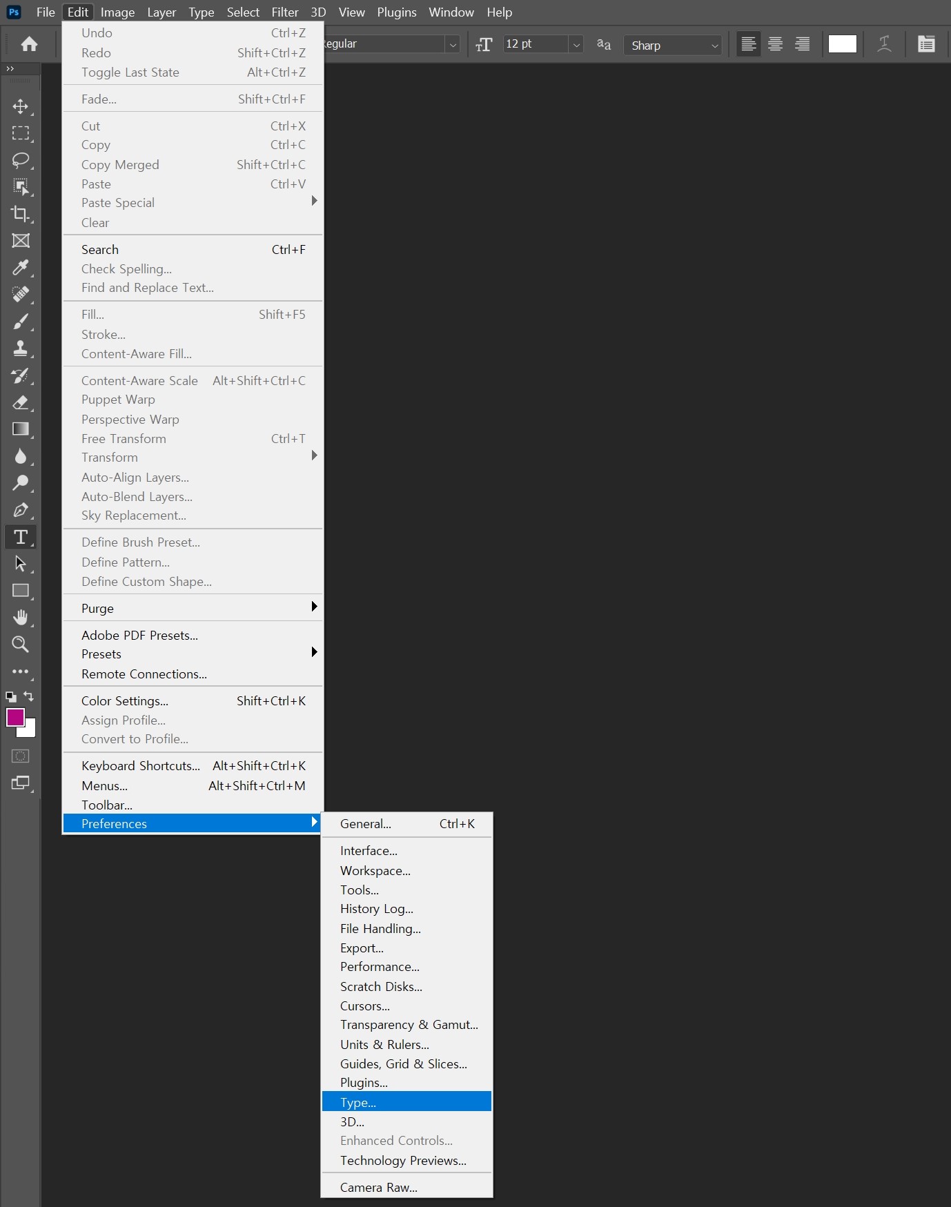 한글 버전 포토샵을 사용하는 사람이라면 반대로 Show Font Names in English 체크 해제를 해주면 된다.