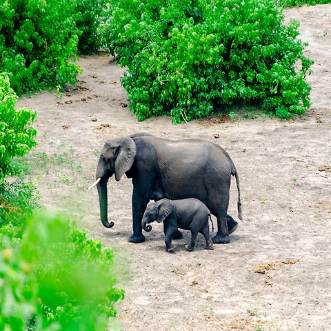 파란 하늘에 흰구름 그리고 녹색 초원위에 코끼리 한마리...