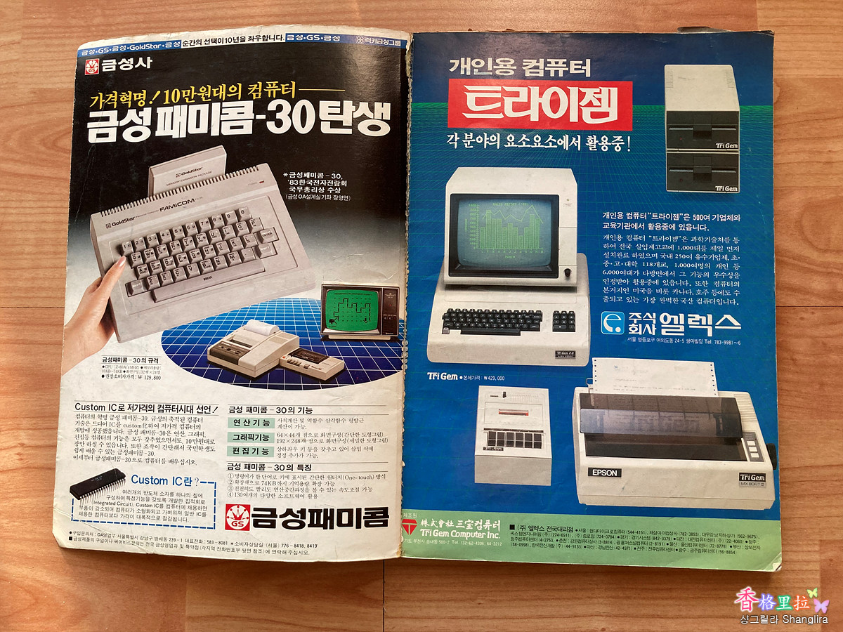 맨 첫장의 광고는 금성 페미콤, 개인용 컴퓨터 트라이젬 광고가 실려있다. 트라이젬이 애플 컴퓨터를 복제한 컴퓨터 상표였다.