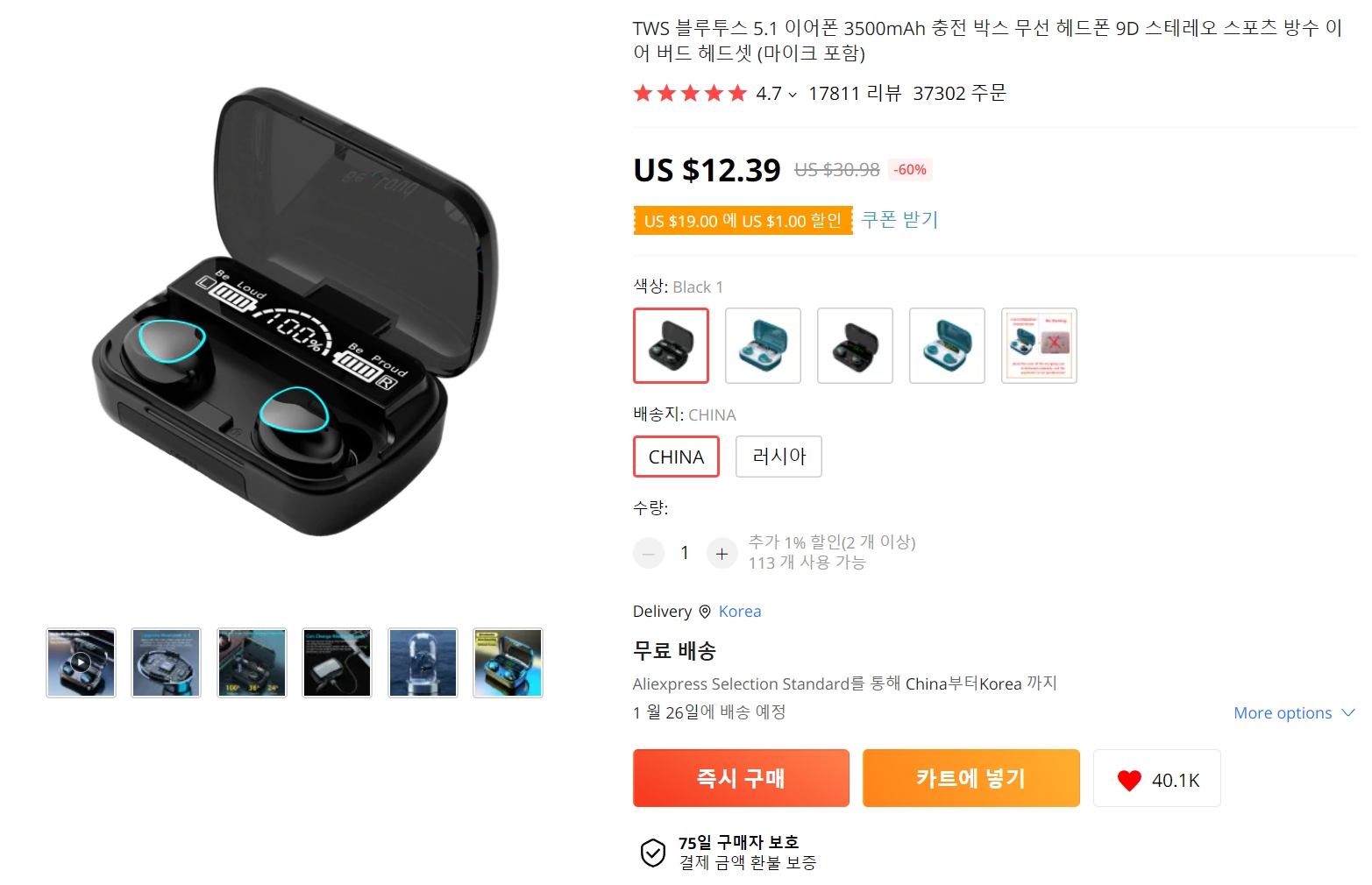 평소 이어폰 줄(cable)을 통해 직접 이어폰을 작동시켜서 나오는 음질이 제일 깨끗하다는 지론을 갖고 있는 터라 아이폰(iPhone) 살 때 번들로 주는 이어폰만 사용하고 있고 이어폰으로 음악도 잘 듣지 않는 편이지만 하도 블루투스 이어폰(Bluetooth Earphone) 광고를 하길래 어떤가? 하고 알리(Ali)를 검색하다가 한국인들도 많이 구매한 제품이라 주문 버튼을 클릭했다.