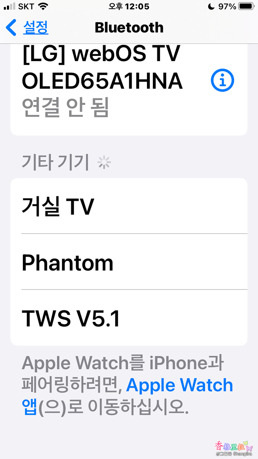 블루투스 목록에 TWS V5.1 이 나타나서 터치해 주니 페어링이 완료되었다.