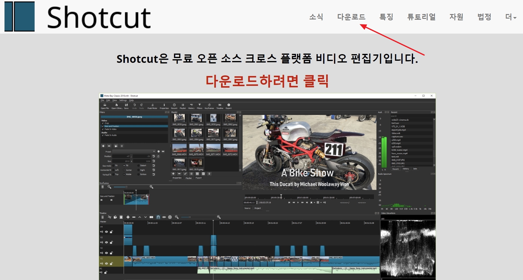 Shortcut 홈페이지에 접속 Shotcut 프로그램을 다운 받는다.