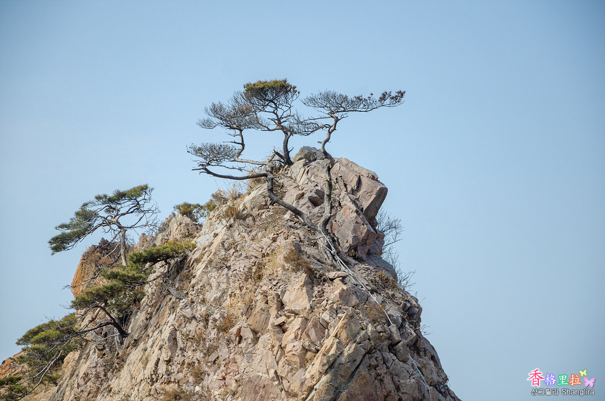 흙이 없는 바위에 뿌리를 내린 소나무. 강인한 생명력을 본다.