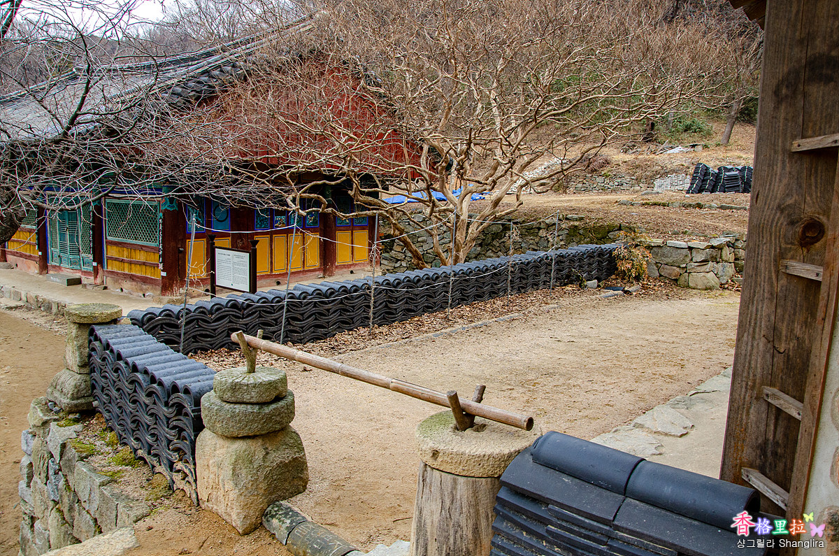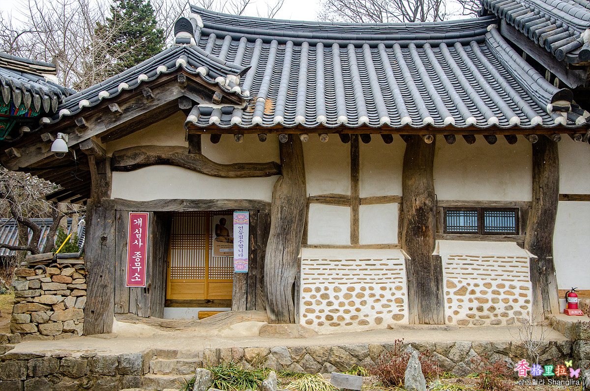 개심사의 건물들은 휘어진 나무 그대로를 기둥으로 사용한 자연적인 미를 추구한 건축 양식이다.