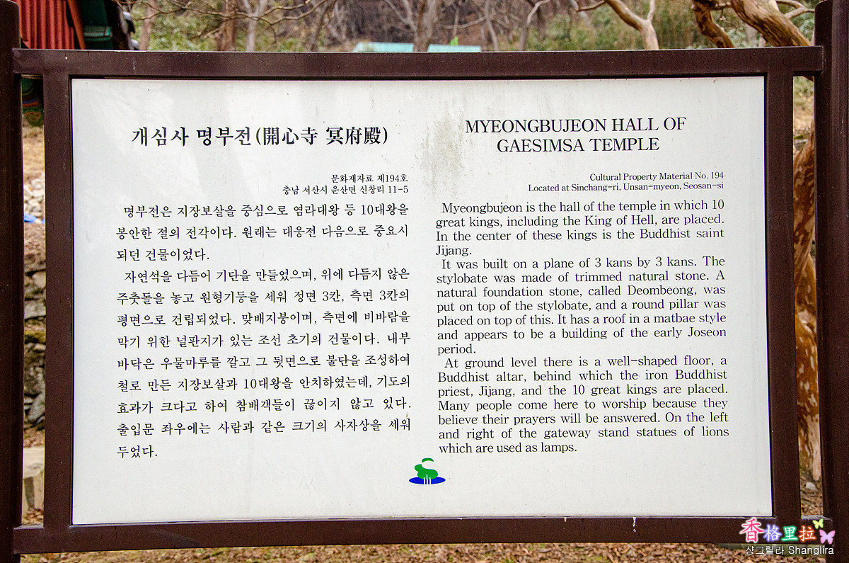 ▲개심사 명부전 안내문