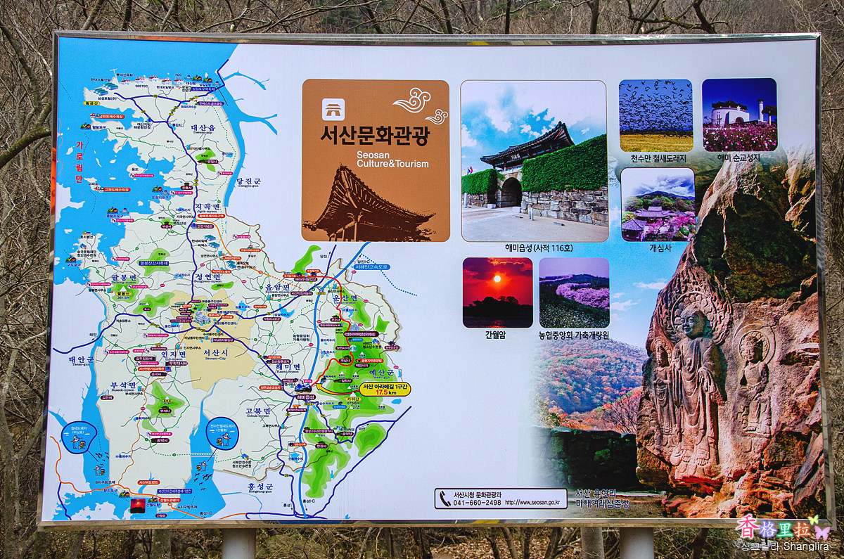 마애여래삼존상(磨崖如來三尊像) 입구에 서산 가볼만한 곳 안내판이 여러개 보인다.