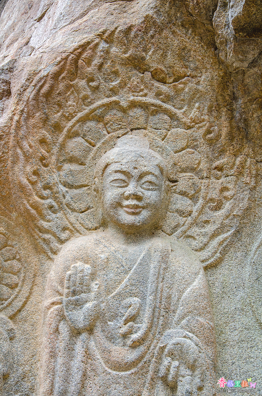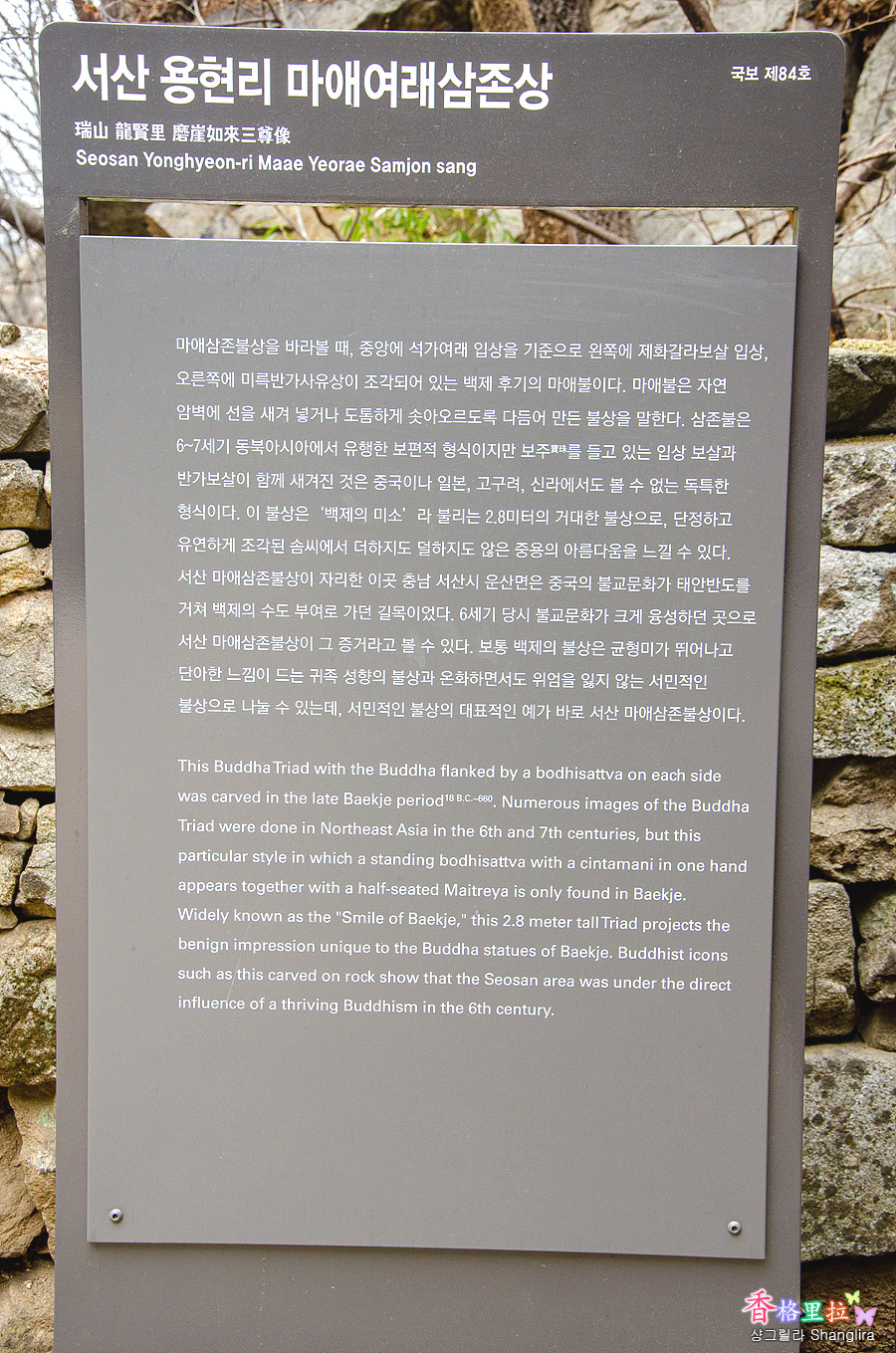바위 아래 부조형태로 조각된 '백제의 미소'라 불리는 자비로운 미소의 불상이 있는 곳이다.
