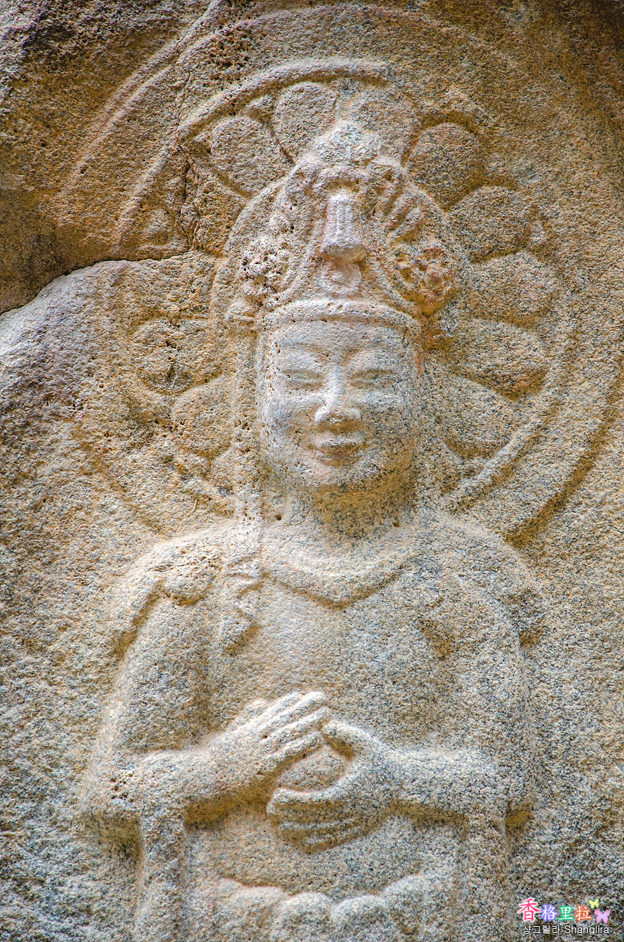 불상의 미소가 빛이 비추는 방향에 따라 다르게 표현된다고 한다.