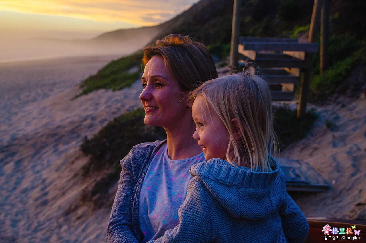 노을빛에 물든 엄마와 아기의 미소는 아름다웠다.