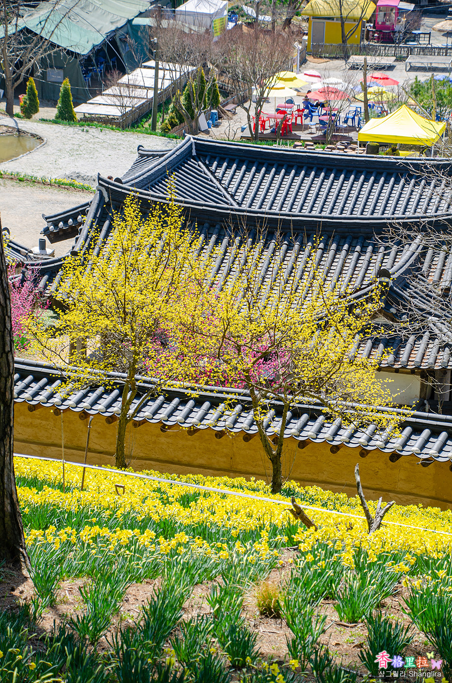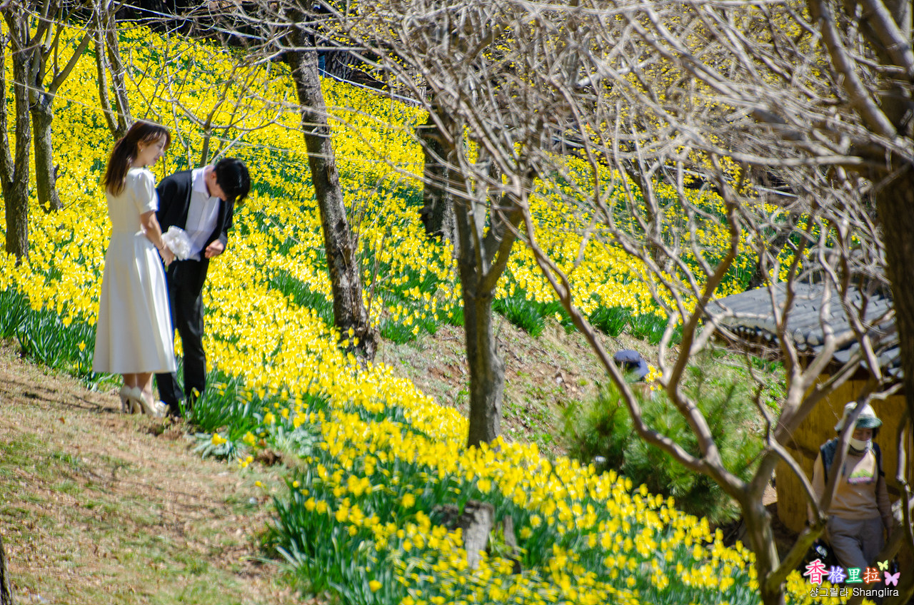 노랑머리 외국인들도 따뜻한 햇빛을 쬐며 수선화를 감상중이다.