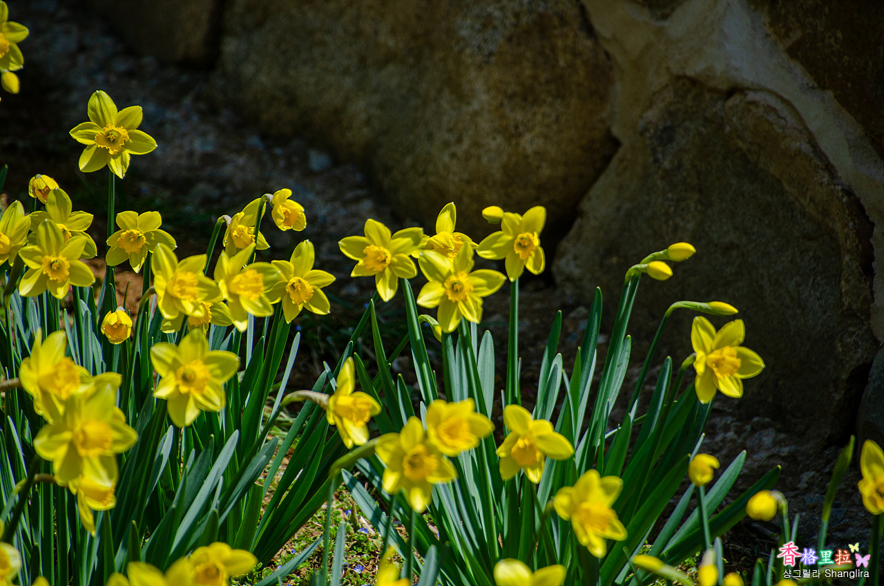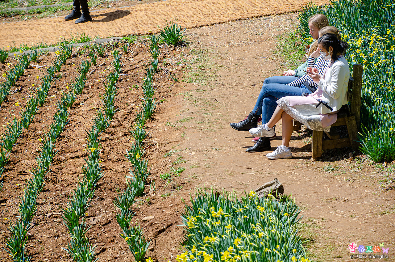 노랑머리 외국인들도 따뜻한 햇빛을 쬐며 수선화를 감상중이다.