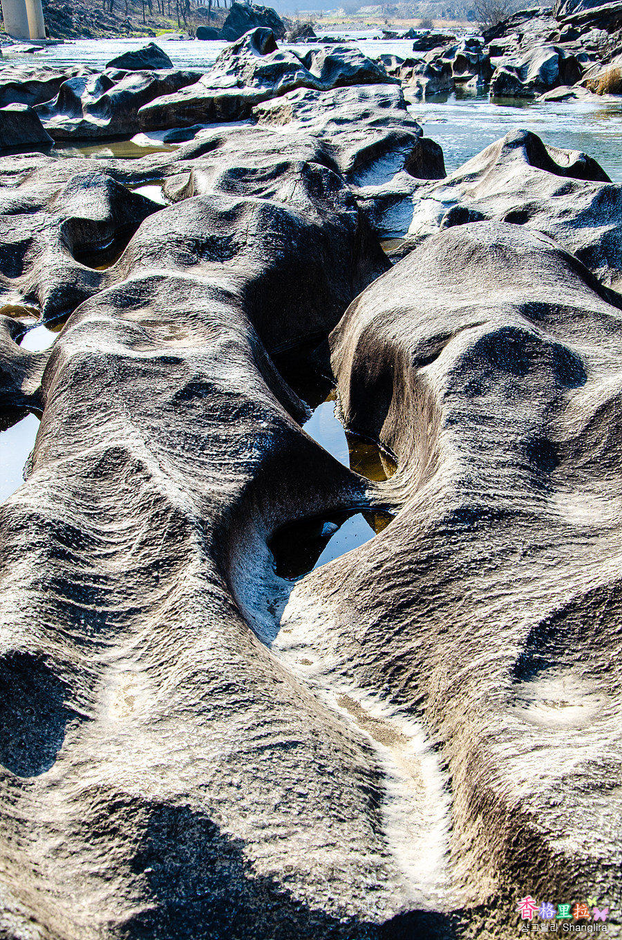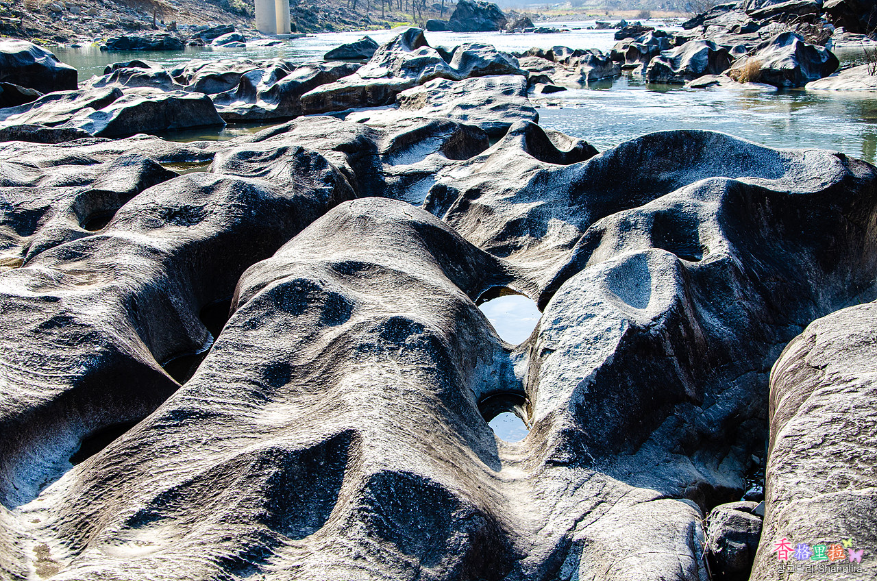 물살이 세지 않으면 바위가 이렇게 깎여 나가지 않는다.