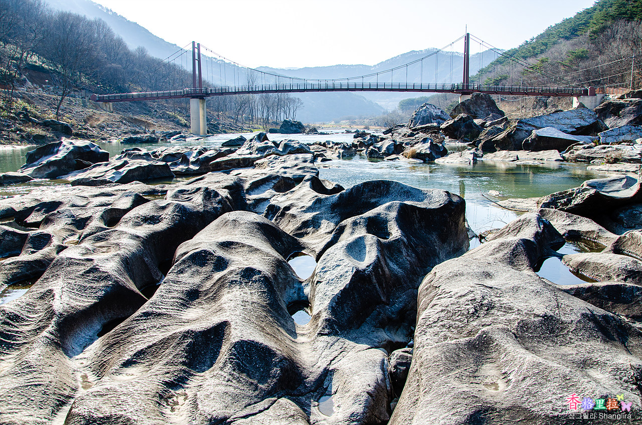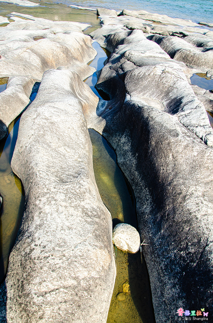 물살이 세지 않으면 바위가 이렇게 깎여 나가지 않는다.
