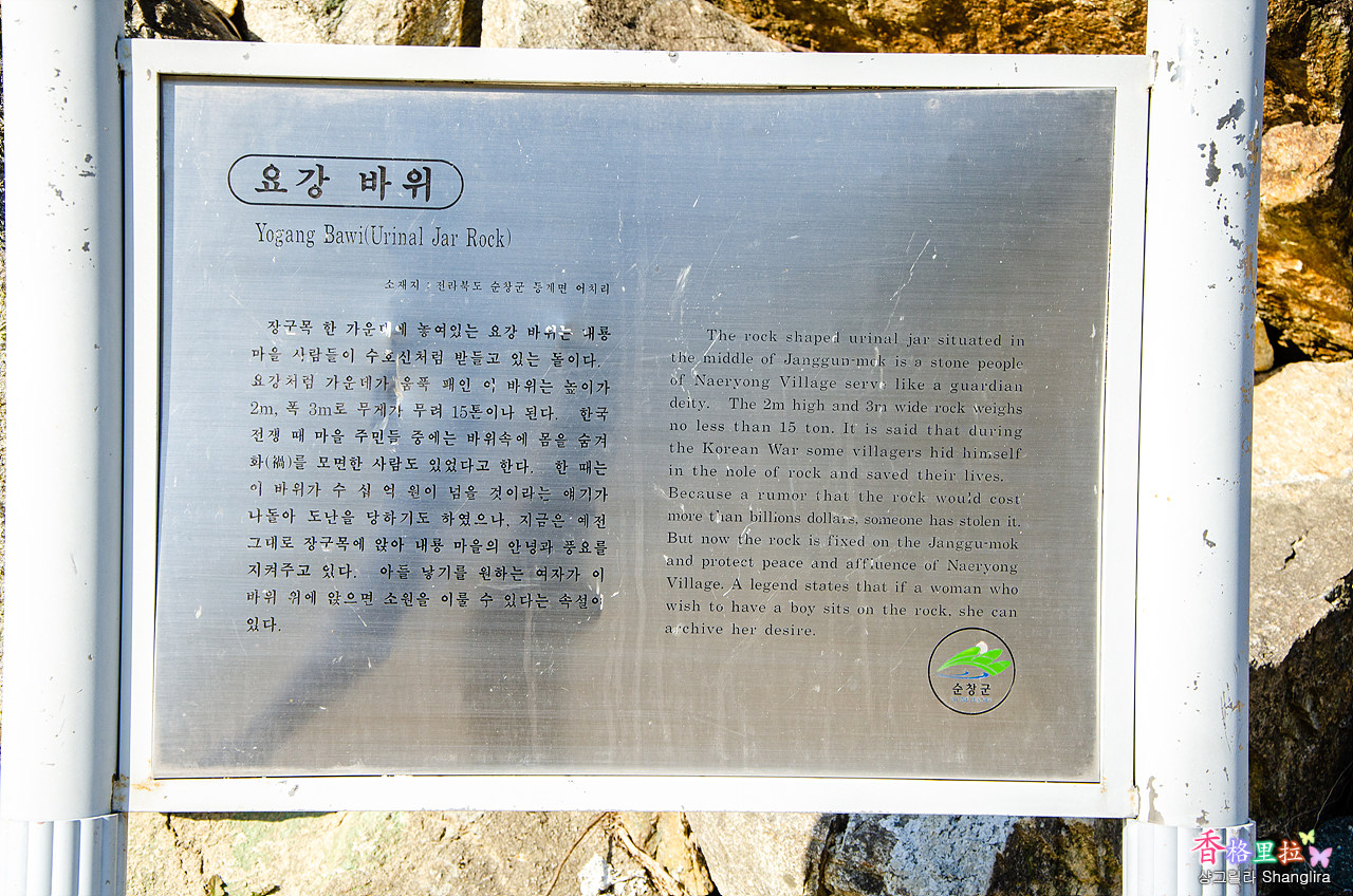 전북 순창군 동계면 어치리에 위치한 요강바위.