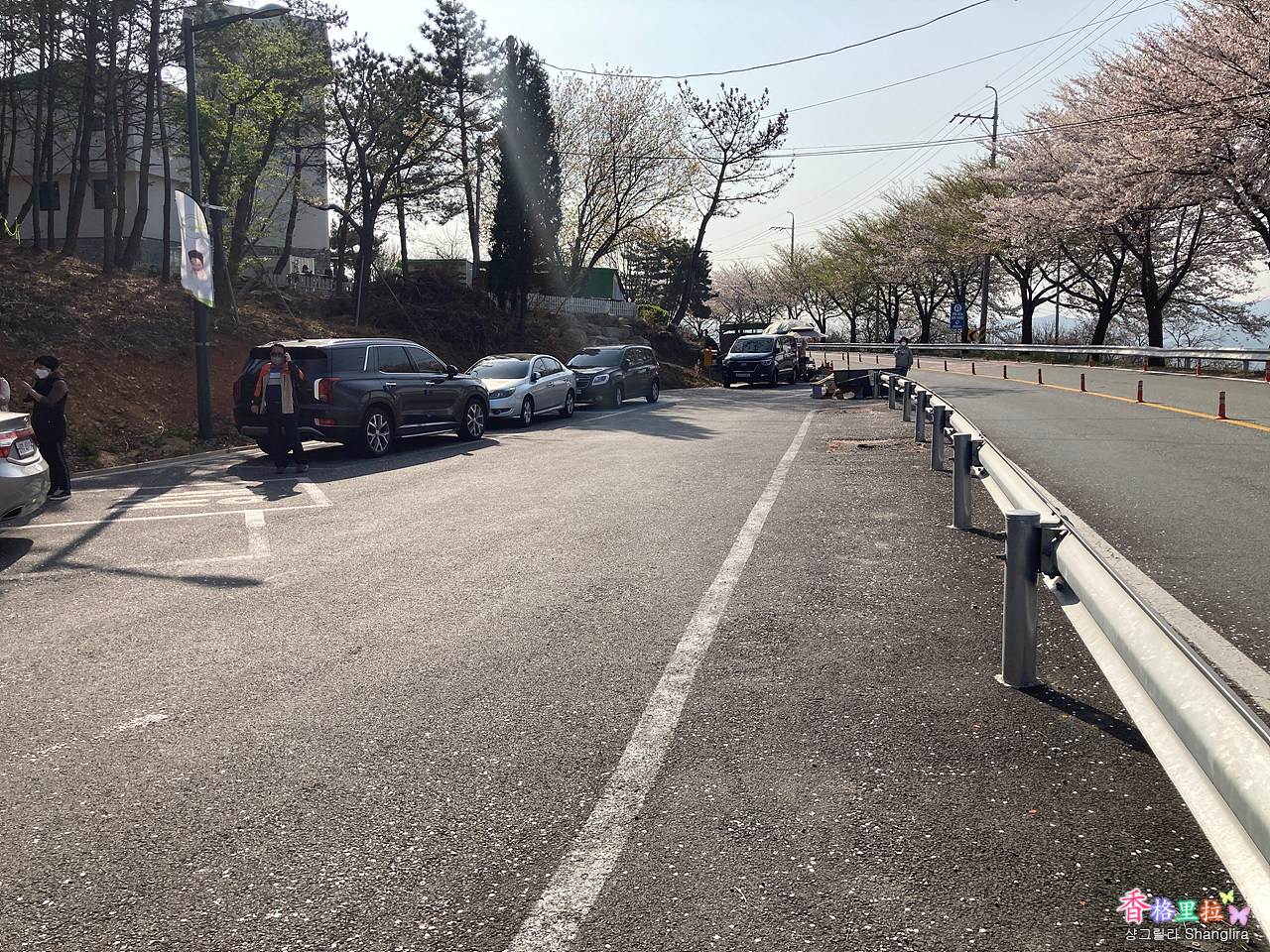 앞에 도로변에 주차장이 더 있다.