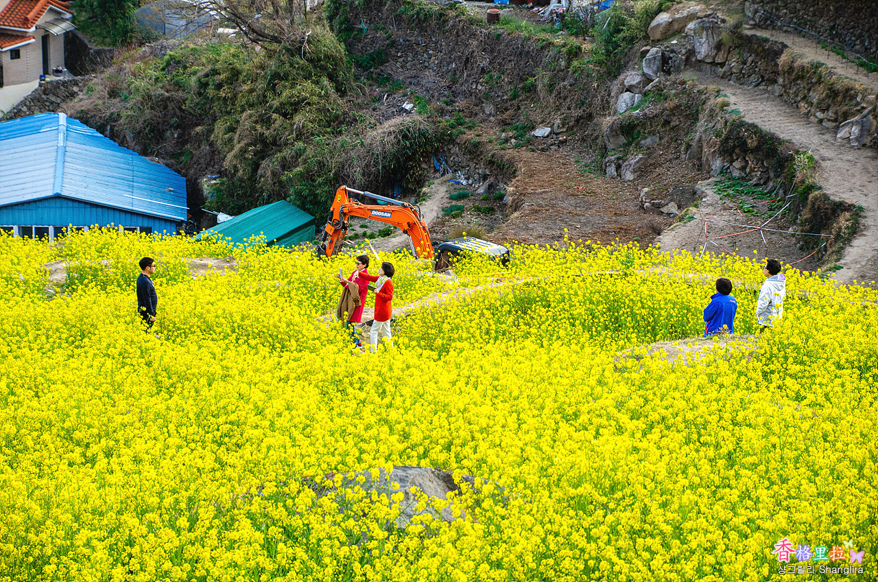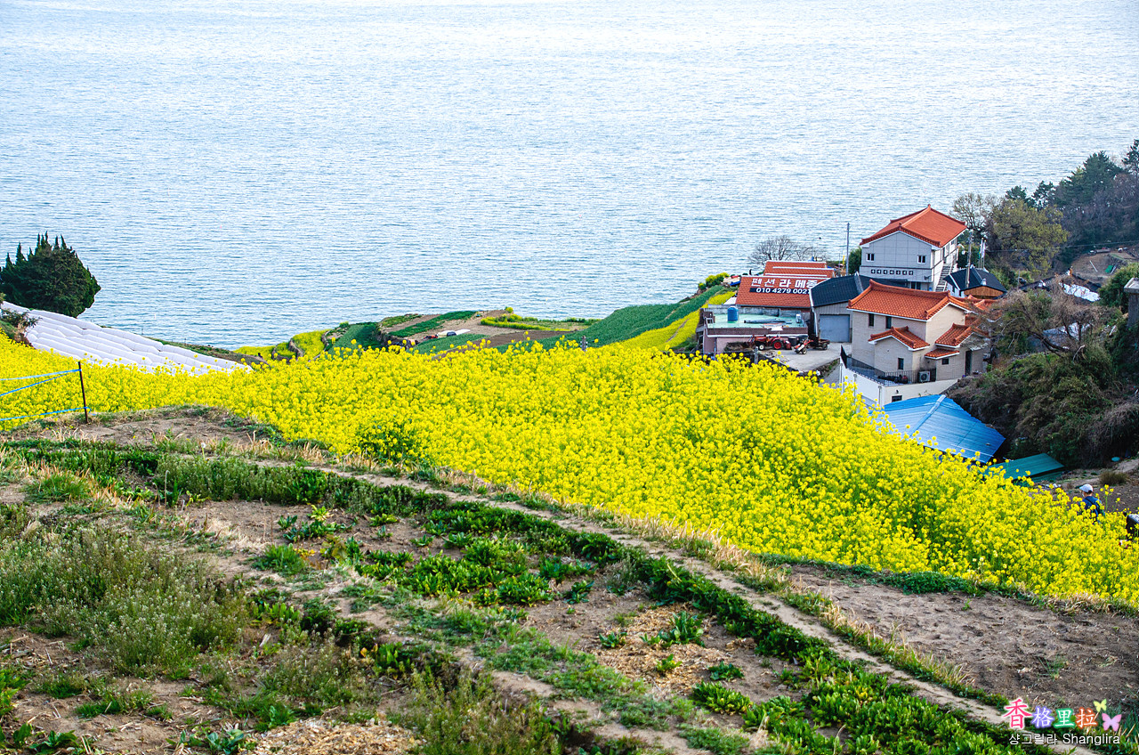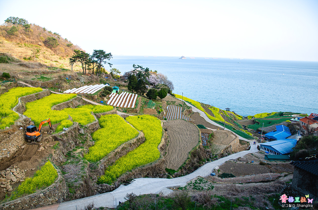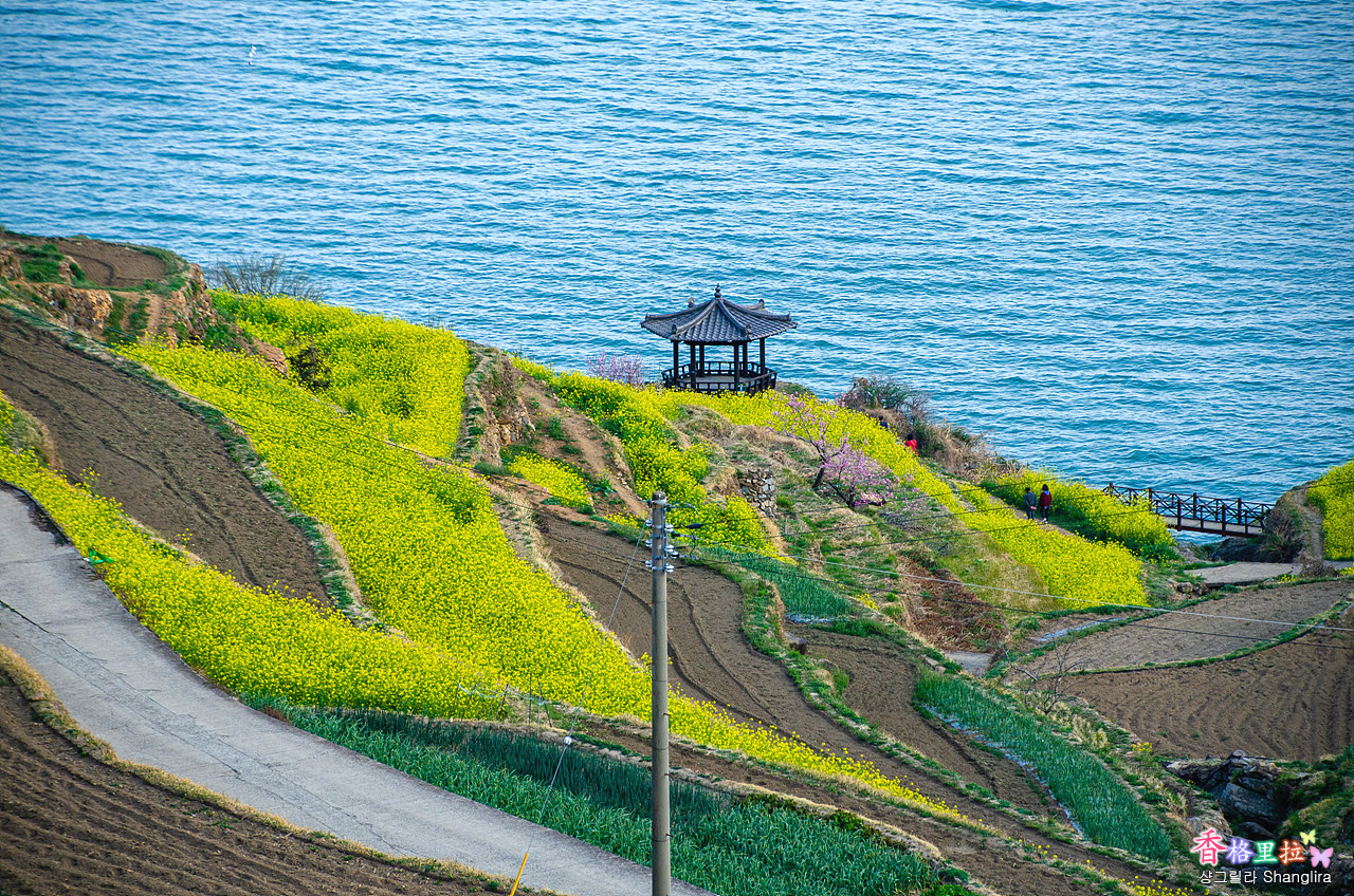 다랭이밭의 유채꽃밭에 노란색으로 물들었다.