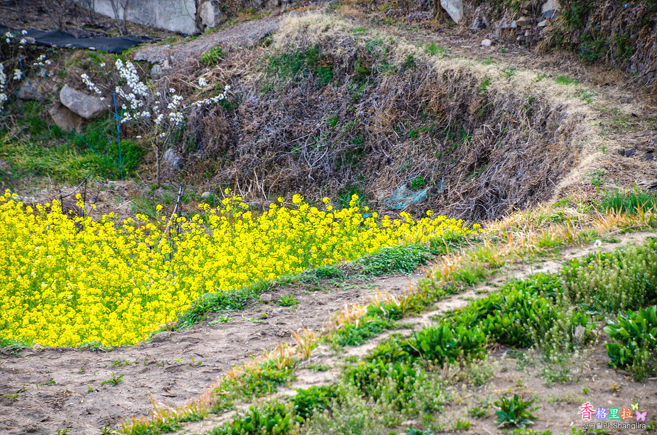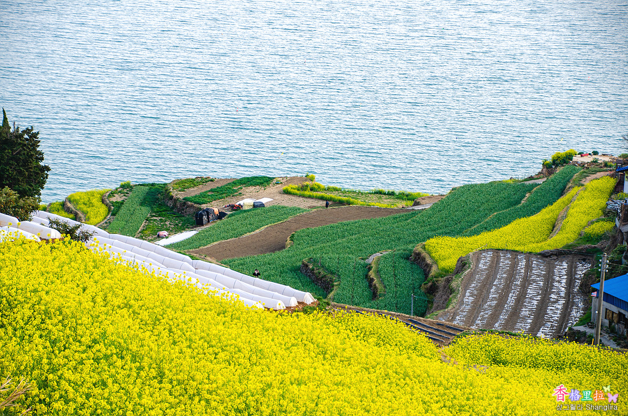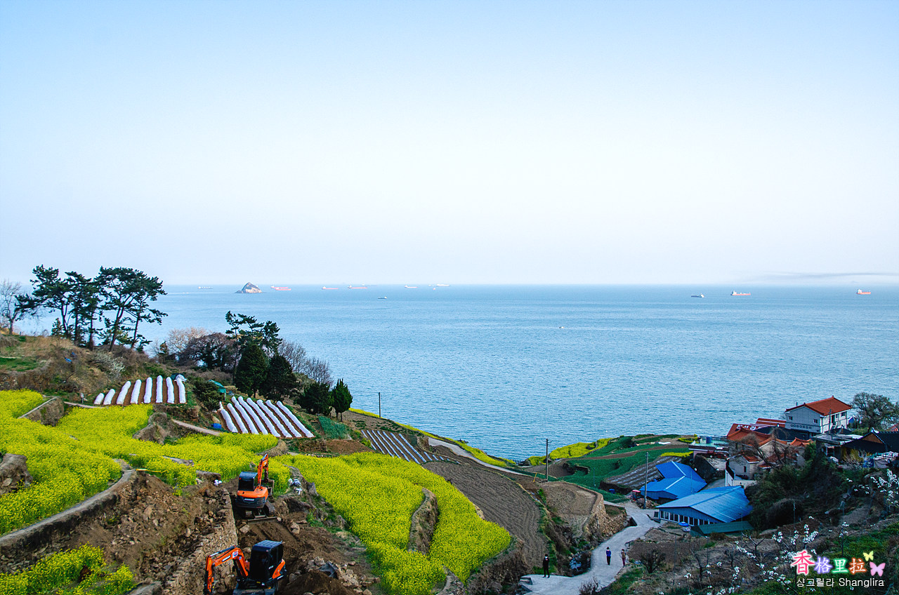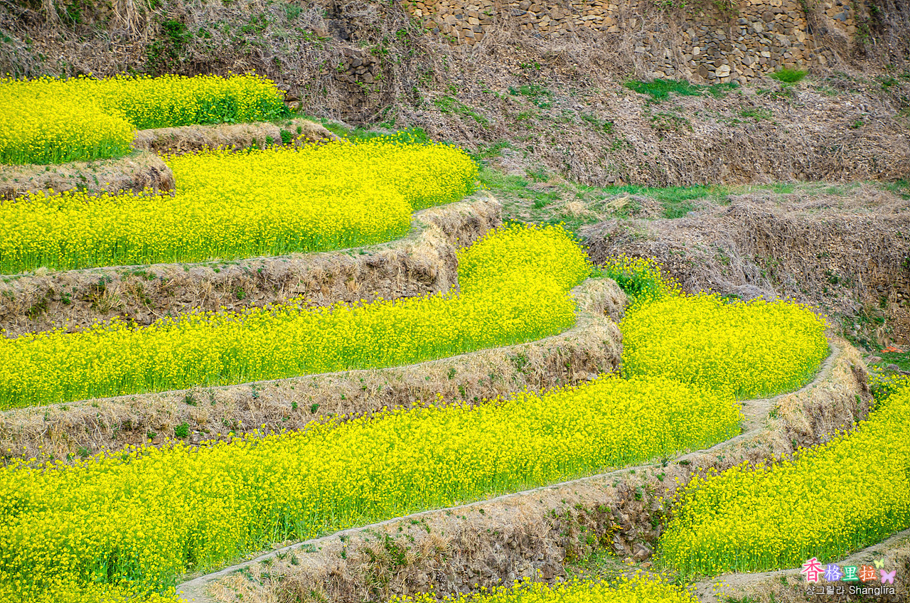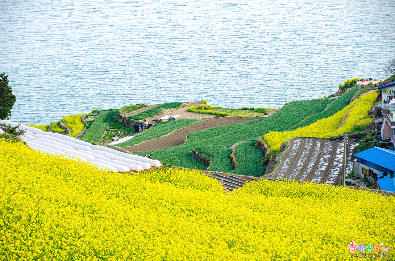 다랭이밭의 유채꽃밭에 노란색으로 물들었다.