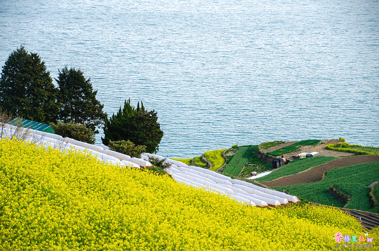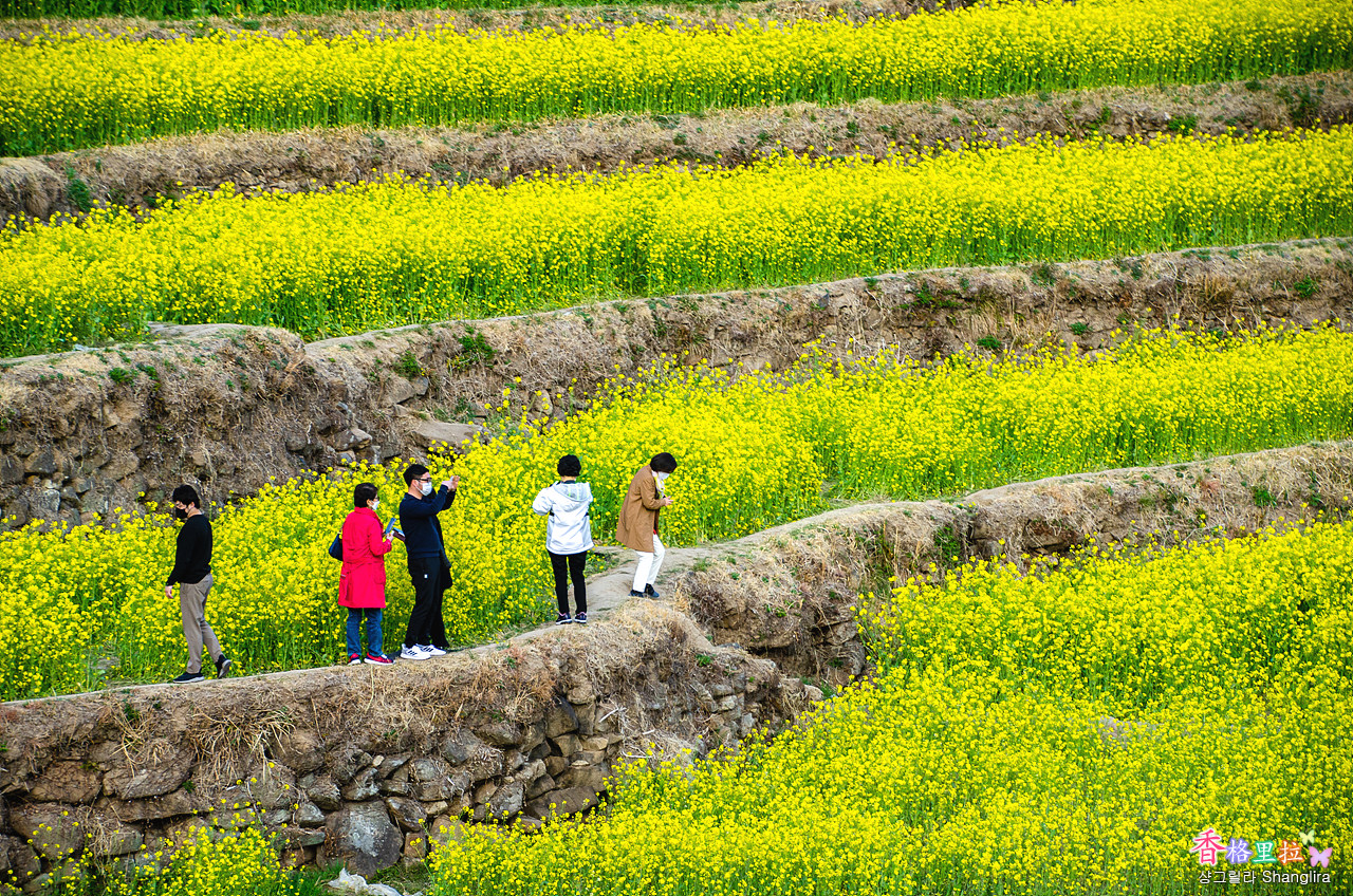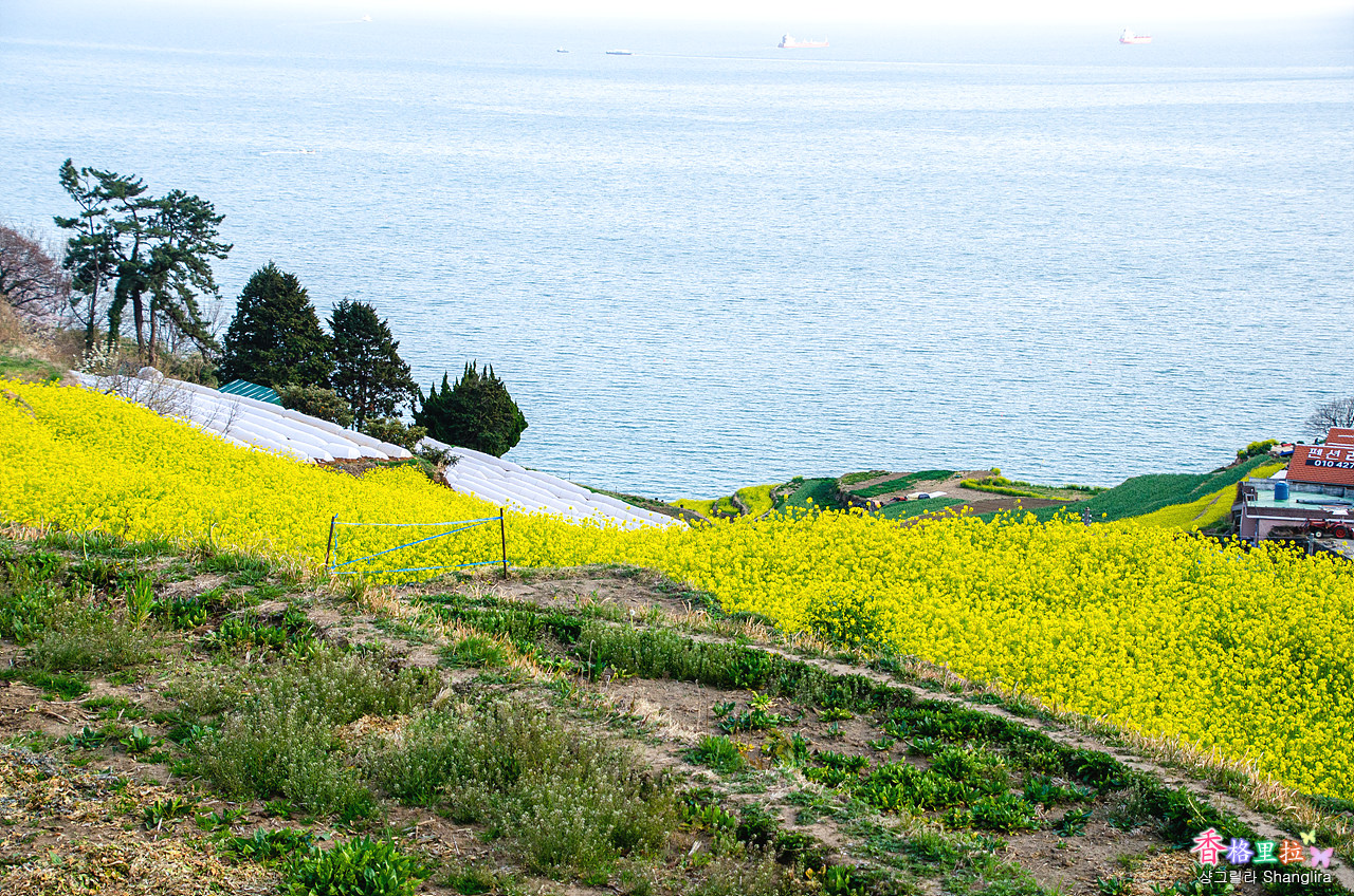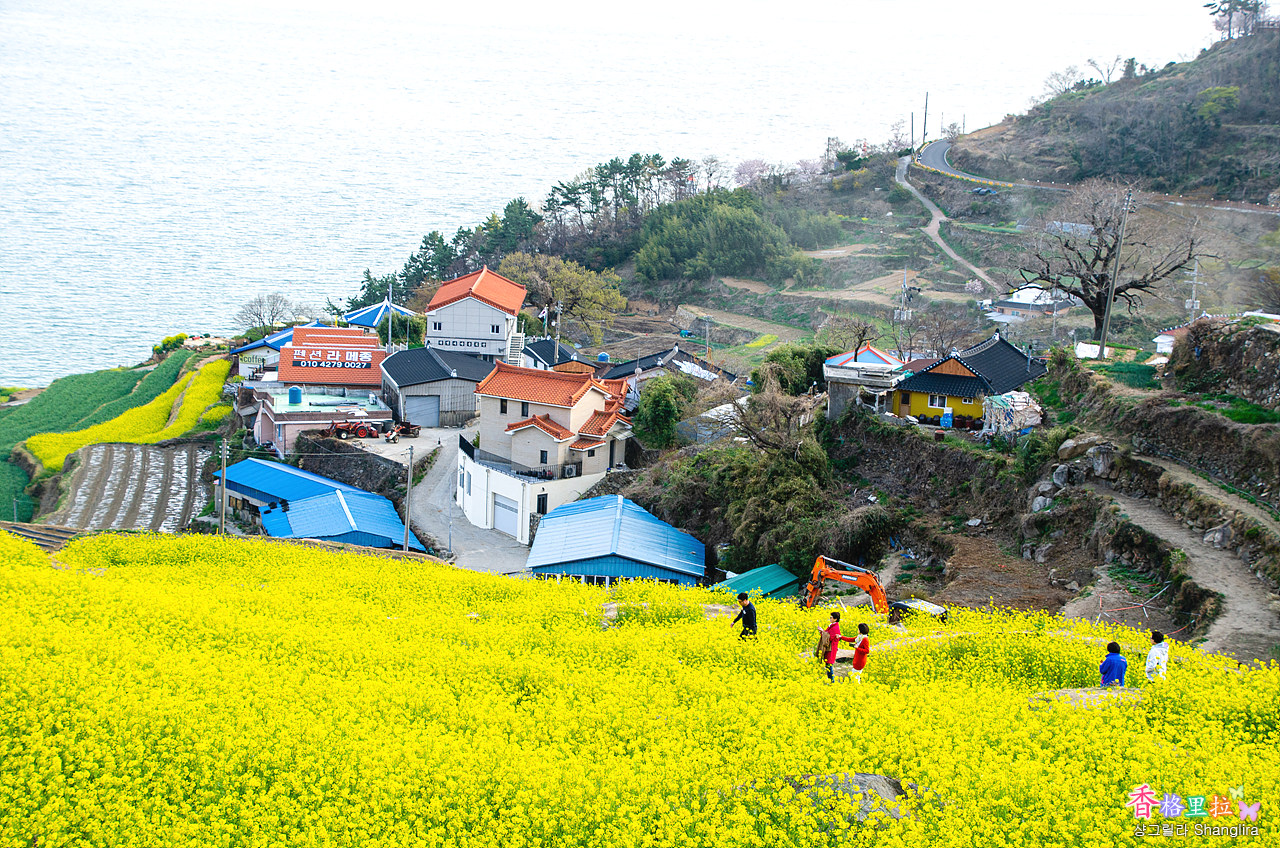 다랭이밭의 유채꽃밭에 노란색으로 물들었다.