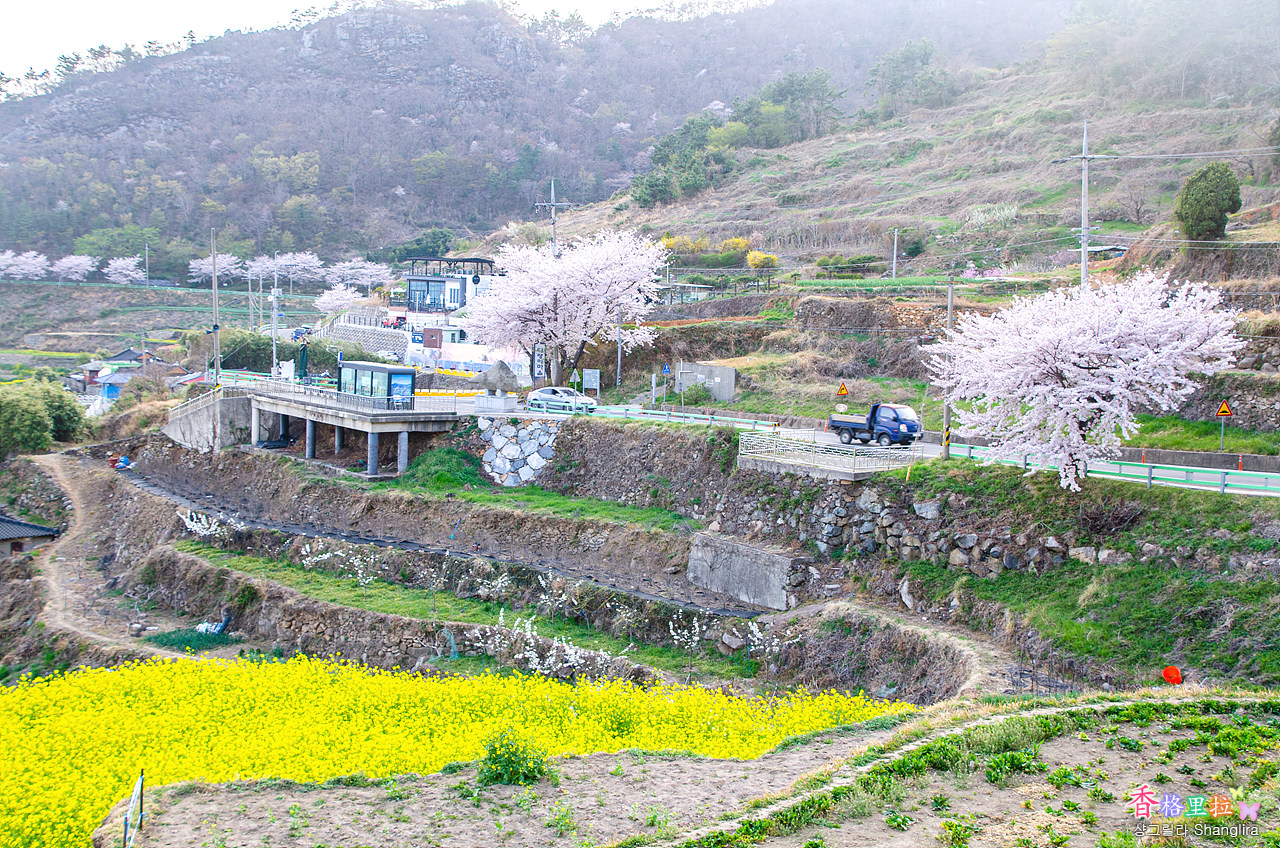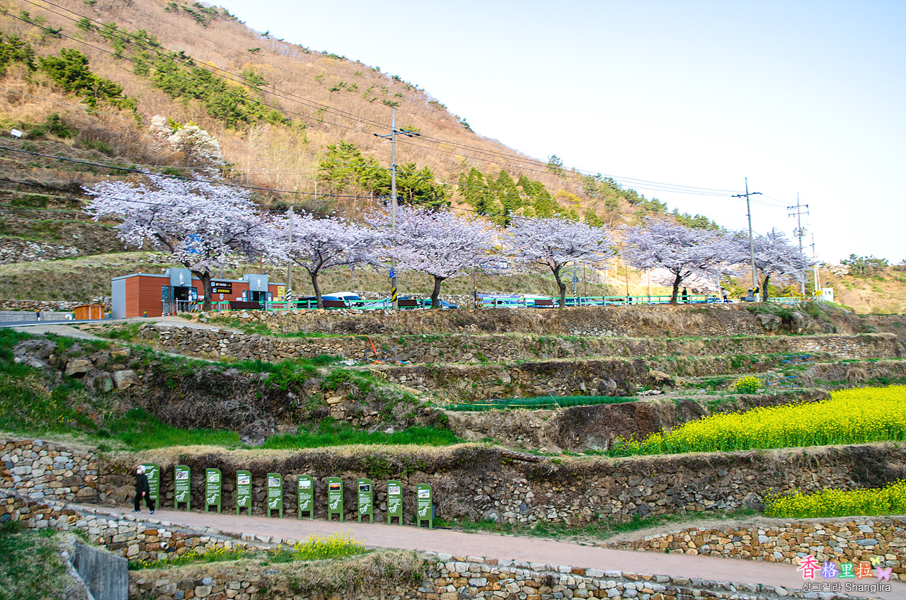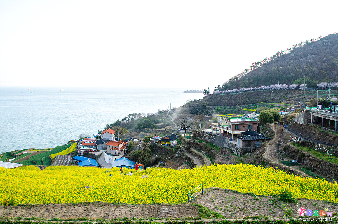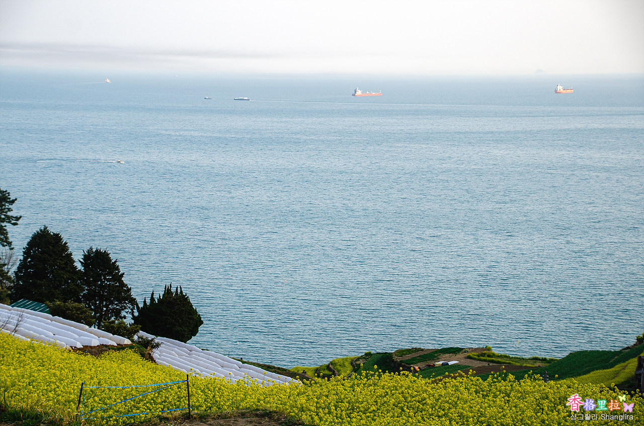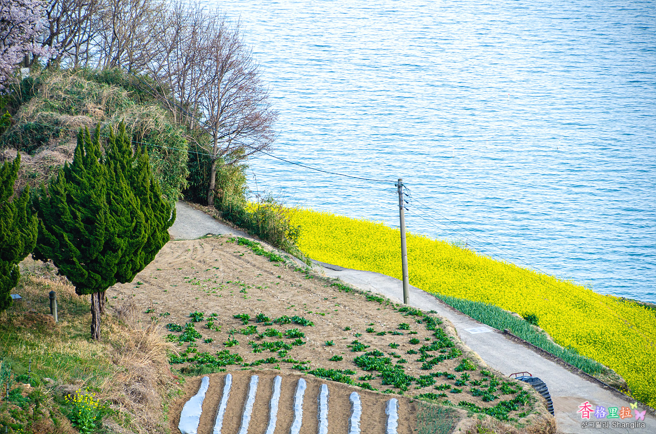 다랭이밭의 유채꽃밭에 노란색으로 물들었다.
